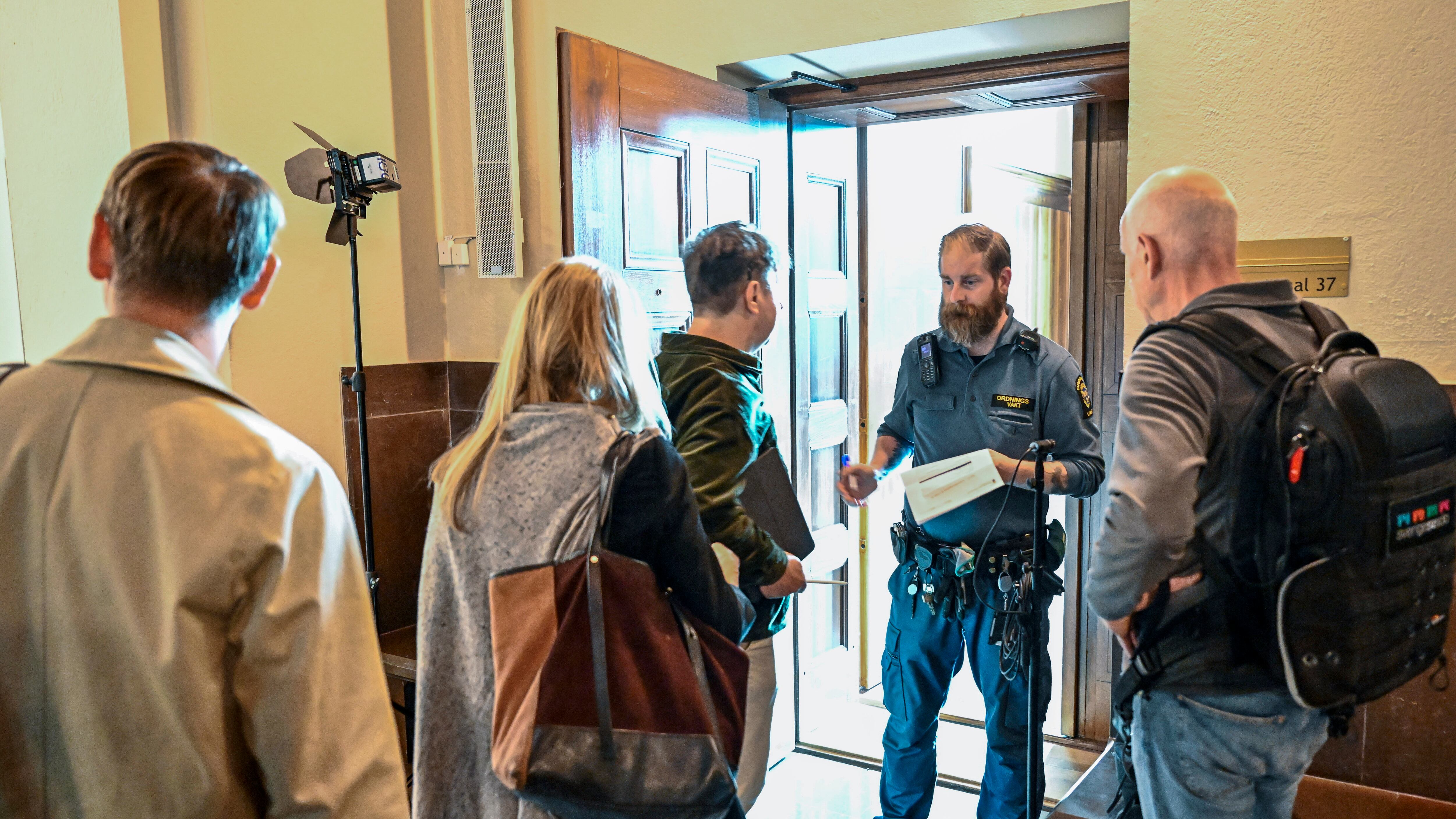 Un grupo de personas frente al tribunal en Estocolmo donde un ciudadano sueco nacido en Rusia está siendo enjuiciado por acusaciones de espionaje, el 4 de septiembre de 2023. (Jonas Ekstromer/TT News Agency via AP) AP (Jonas Ekströmer/AP)