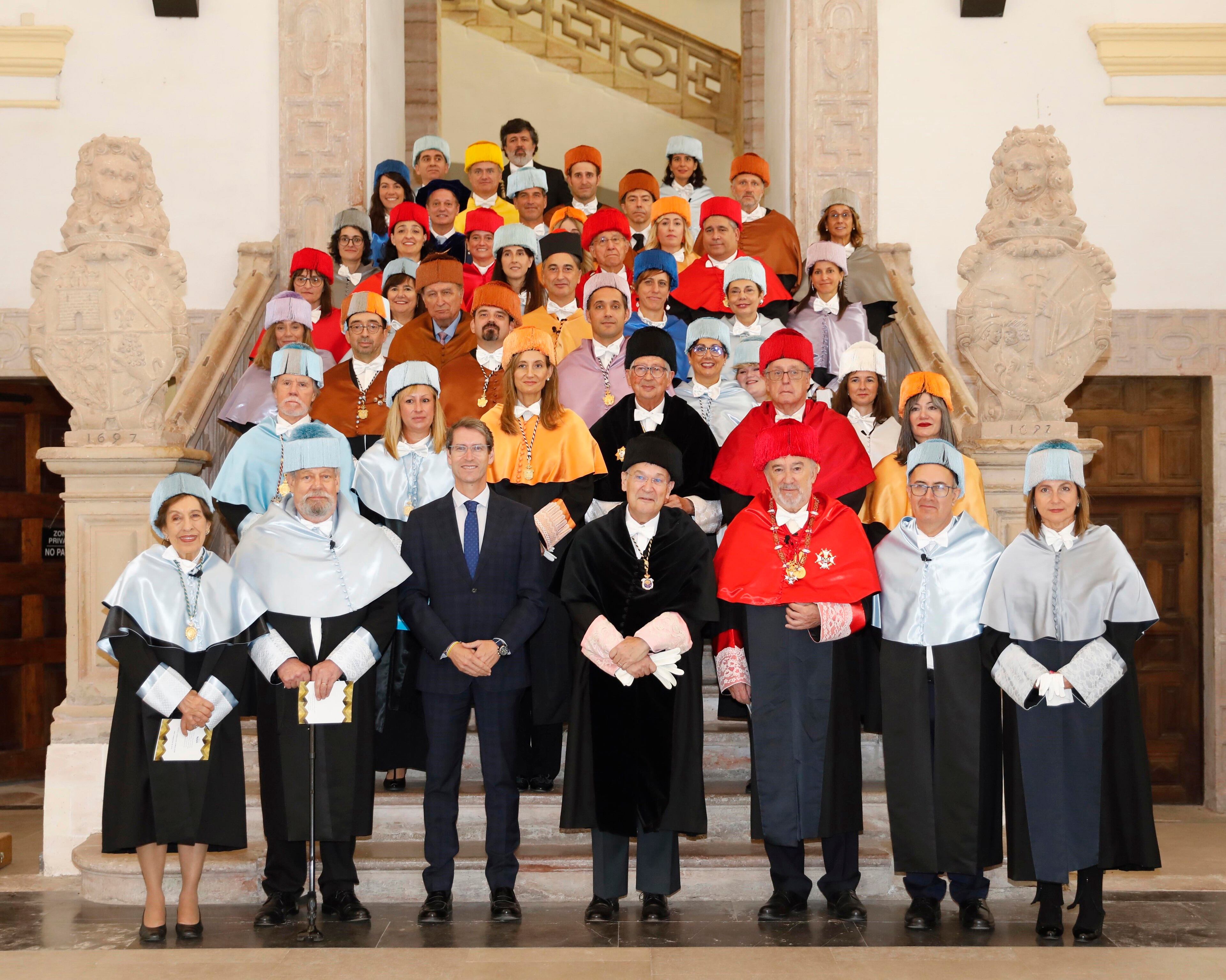 Todos ellos ha estado acompañados por el presidente de la Universidad, Rafael Puyol, y de una comitiva de 40 profesores, autoridades académicas y miembros de los consejos asesores de la universidad.