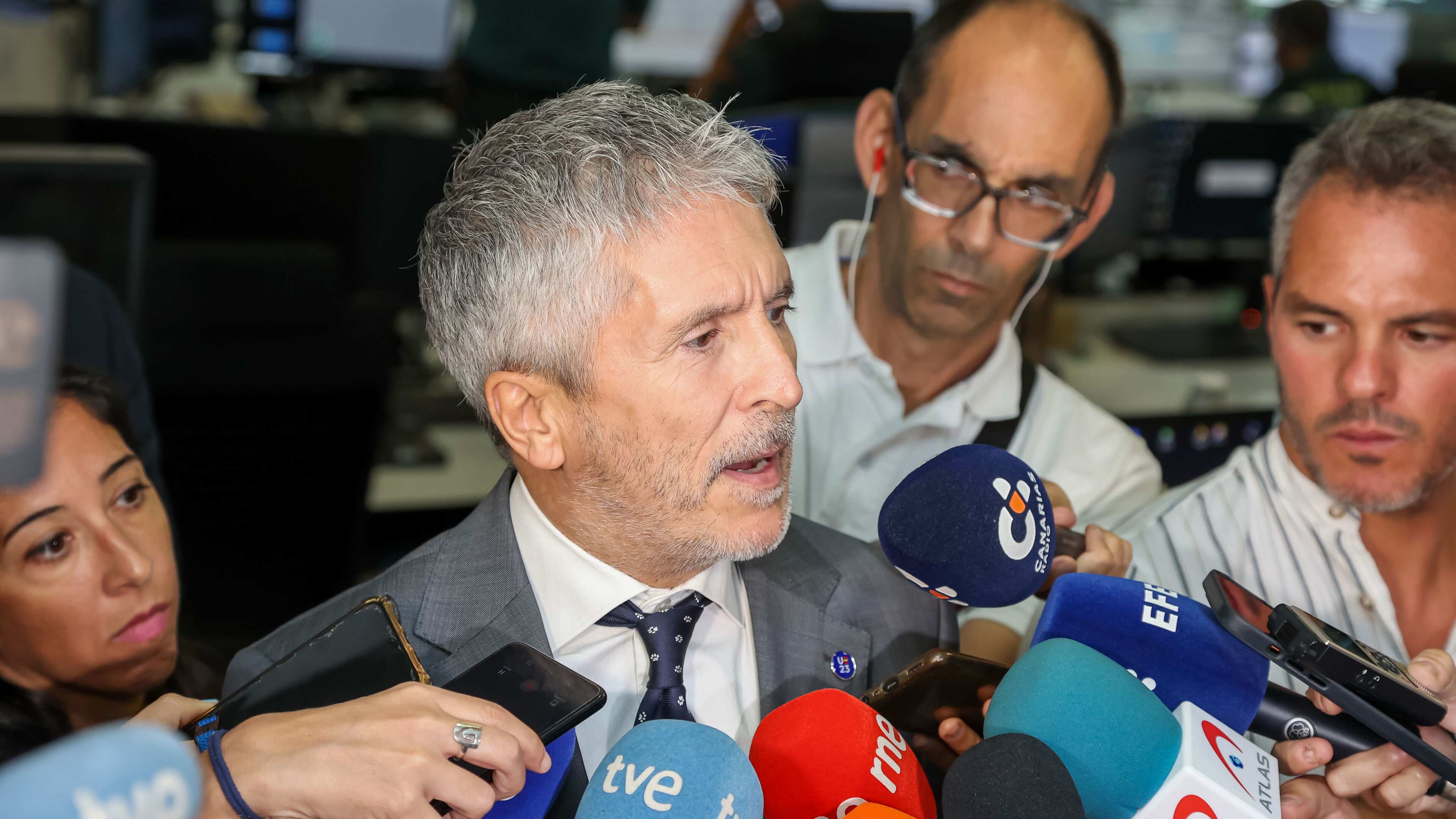 Sobre la fotografía que ha aparecido estos días de casi un centenar de inmigrantes en el parking de la comisaría de Policía Nacional en Arrecife (Lanzarote), el ministro ha querido subraya que "ninguna de esas personas pernoctó en ese lugar", afirmando que fueron "correctamente atendidas y en parámetros humanitarios".