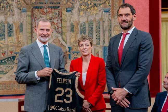 "Elisa Aguilar agradeció a Felipe VI la audiencia privada donde se trataron temas de actualidad de las selecciones o la actividad de los actos del Centenario, y se le hizo entrega de una camiseta conmemorativa y el Carnet de Socio número 1 de la Selección Española que se va a lanzar próximamente para todos los aficionados", explicó la FEB en un comunicado.