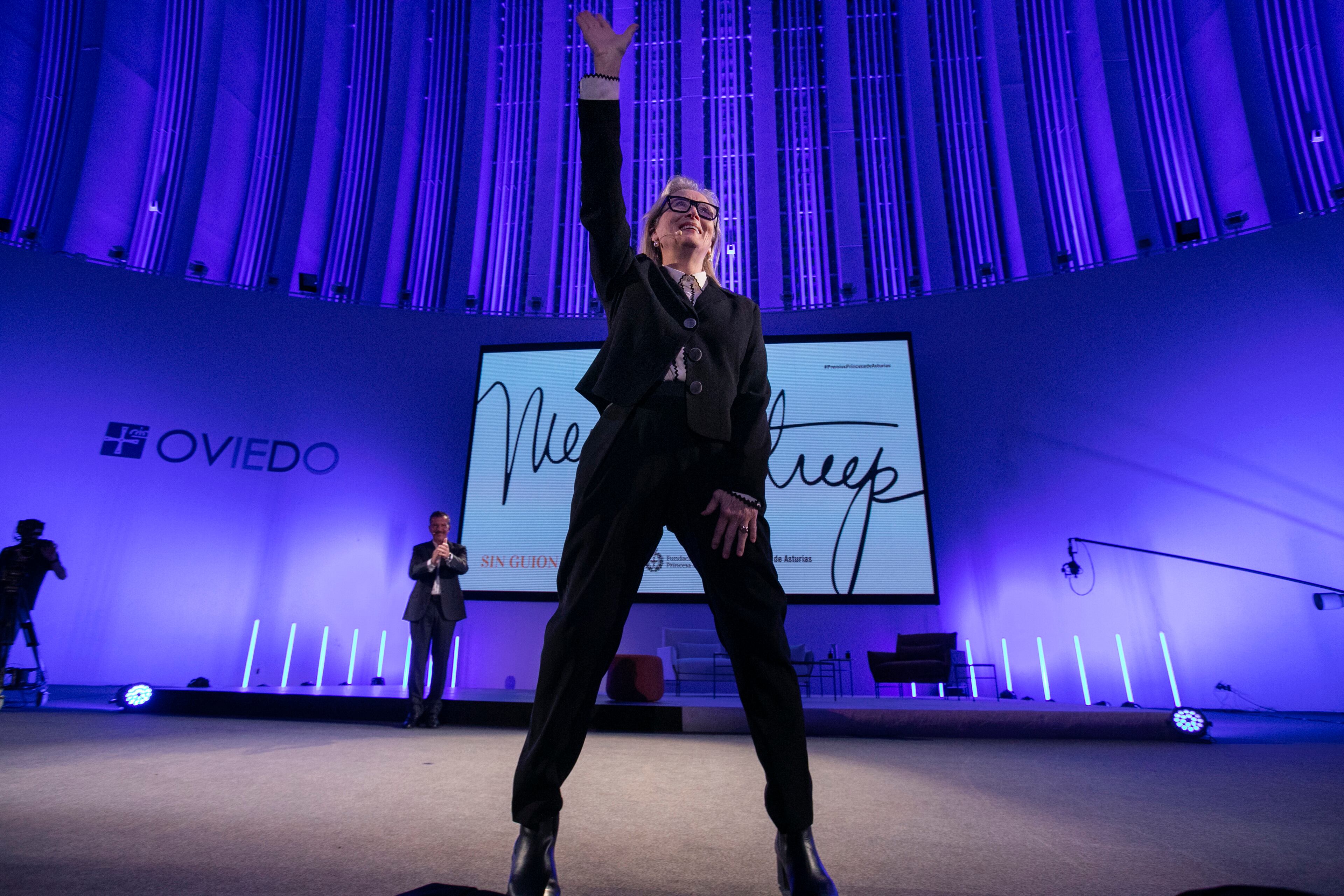 La actriz, acompañada del actor Antonio Banderas ha participado este miércoles en el acto 'Sin guión. Encuentro con el público', enmarcado en los actos de la Semana de los Premios y celebrado en un Palacio de Congresos de Oviedo donde no ha quedado ningún sillón libre, con más de 2.000 asistentes.