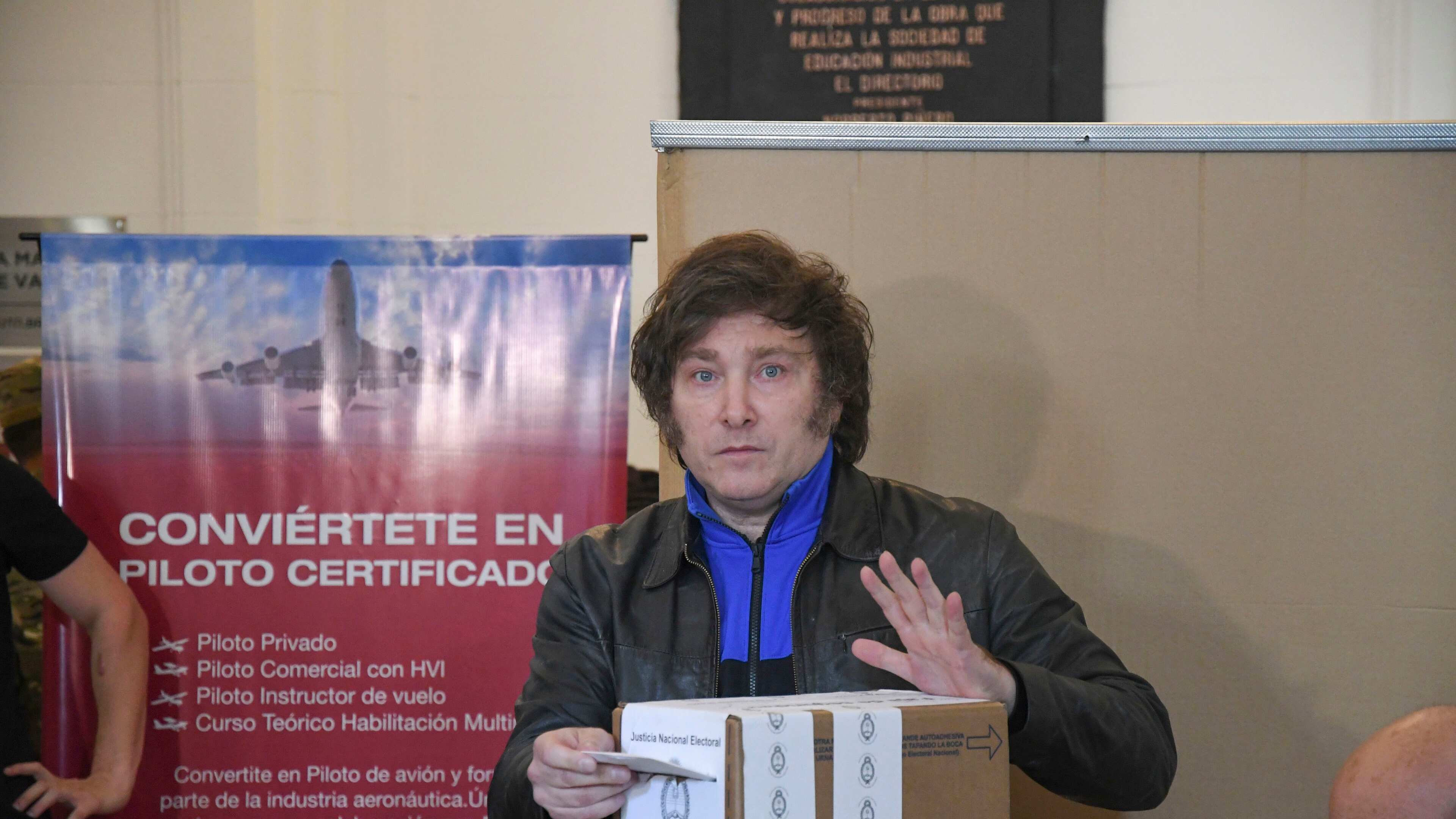 Milei ha llegado al colegio electoral acompañado por una caravana de coches y una multitud que ha lanzado flores al candidato en el día que cumple 53 años, según recoge el diario argentino 'La Nación'.