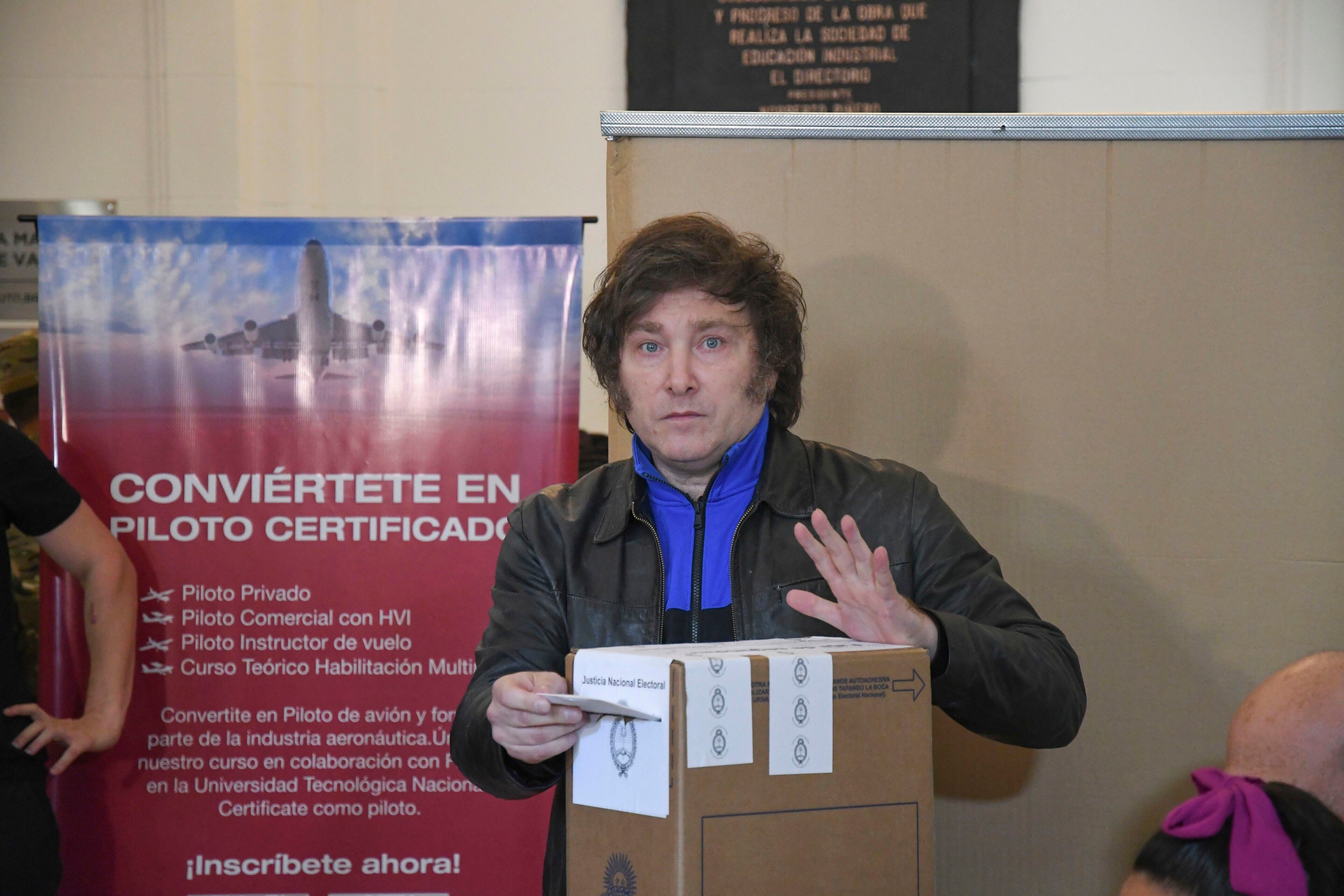 Milei ha llegado al colegio electoral acompañado por una caravana de coches y una multitud que ha lanzado flores al candidato en el día que cumple 53 años, según recoge el diario argentino 'La Nación'.