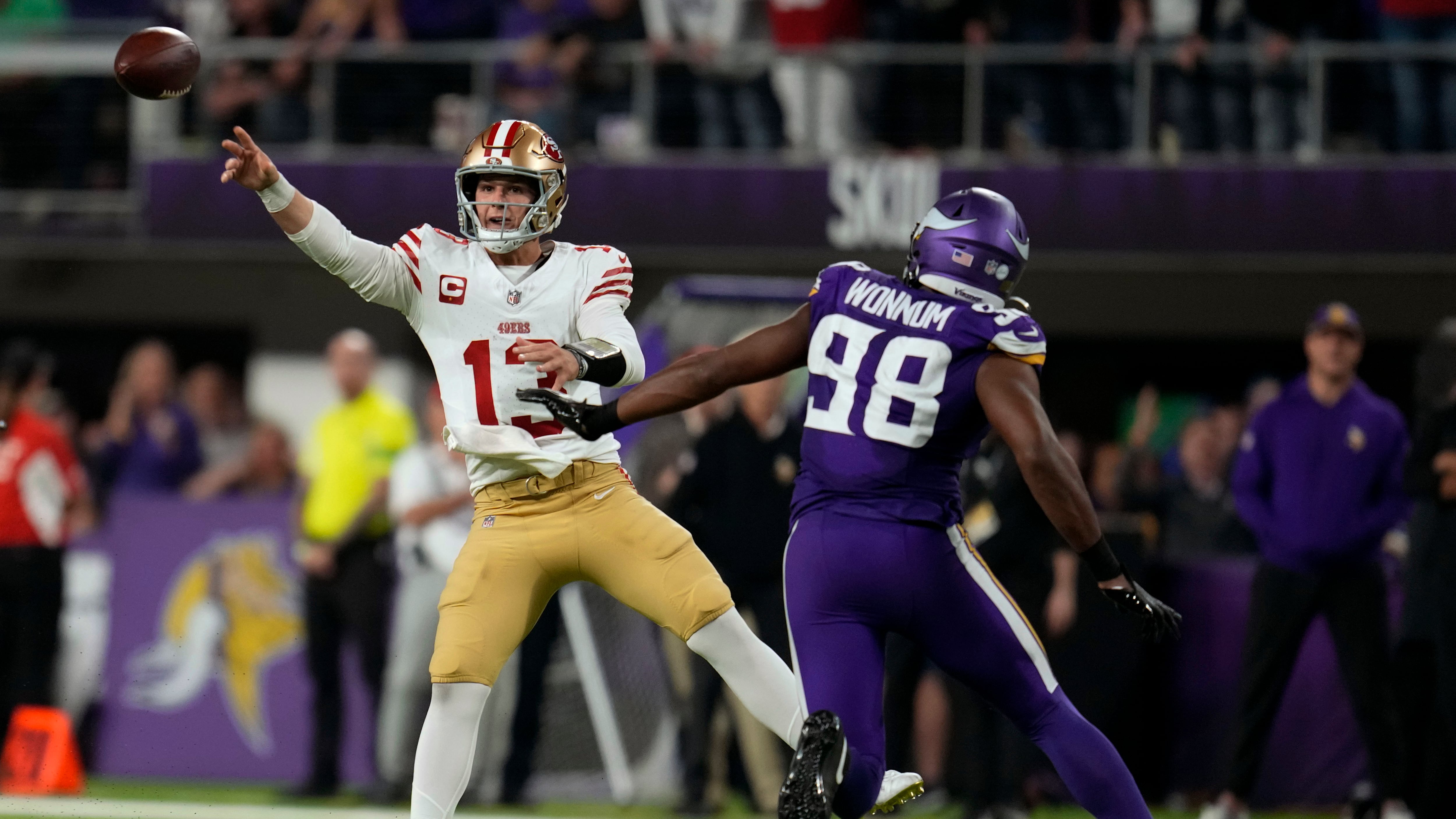 El coach Kyle Shanahan dijo que Purdy reportó síntomas en el vuelo de regreso a casa después de la derrota del lunes por la noche en Minnesota y fue colocado en el protocolo.