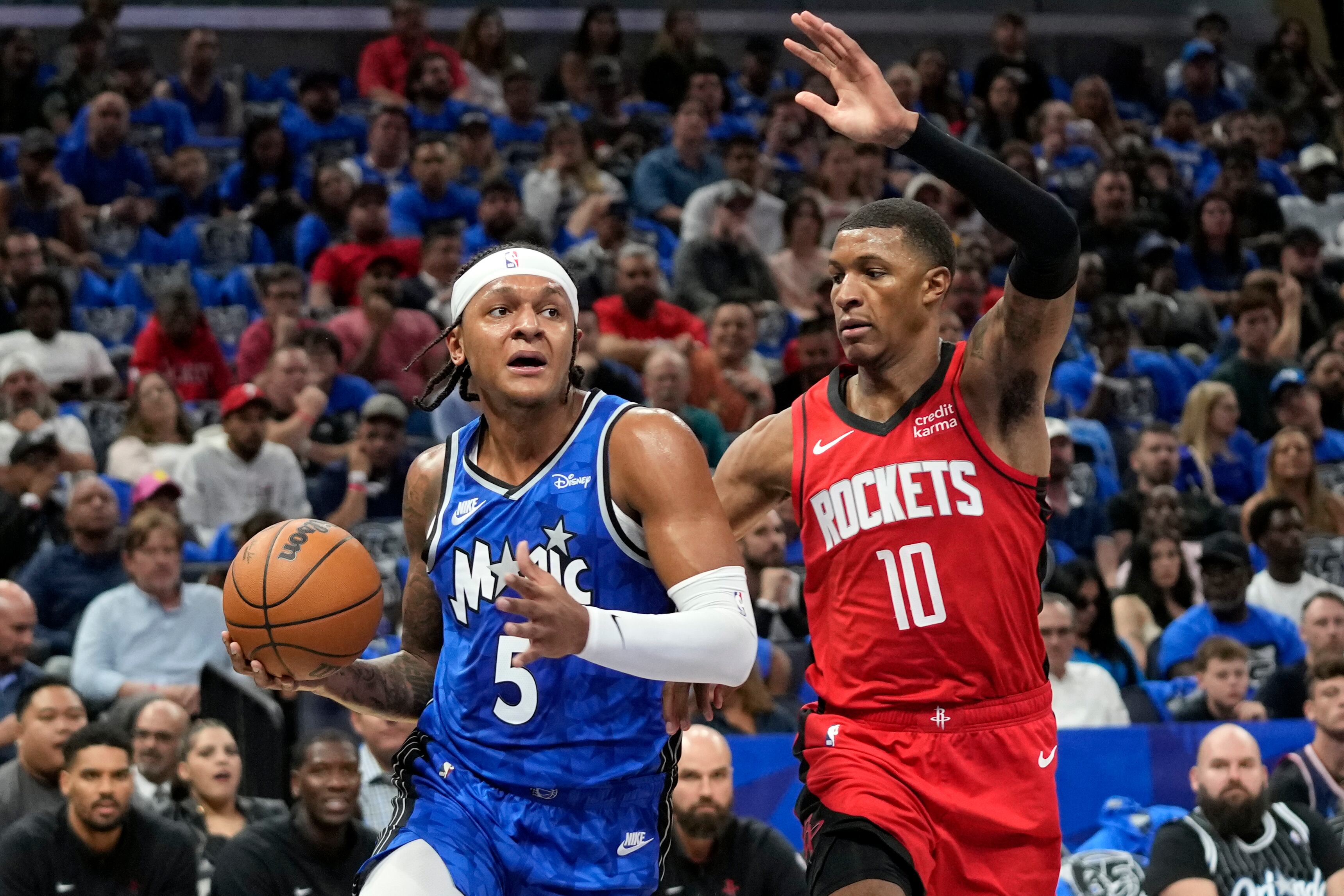 Jonathan Isaac, ala-pívot del Magic que jugó apenas en 11 duelos de las últimas dos campañas por una serie de lesiones, totalizó 11 puntos y cuatro rebotes en 14 minutos. Isaac terminó el tercer cuarto con una tapa ante una bandeja de Jalen Green.
