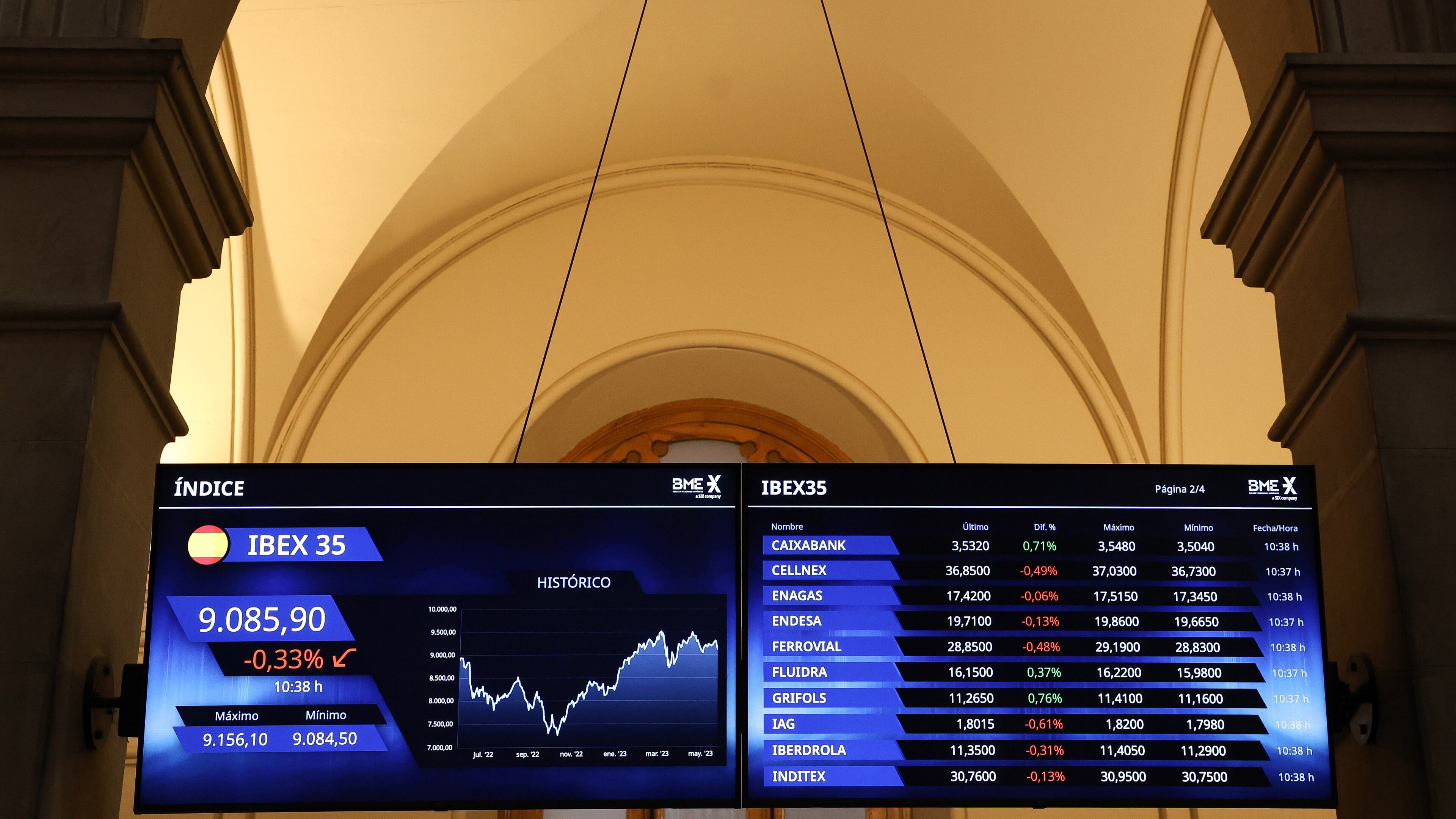 En los primeros compases de esta sesión, las mayores subidas dentro del Ibex 35 se las anotaban Cellnex Telecom (+1,1%), Banco de Sabadell (+0,92%), Solaria (+0,91%), y Acciona (+0,74%), mientras que en el lado contrario los 'farolillos rojos' eran Logista (-1,47%), ArcelorMittal (-0,89%) y Telefónica (-0,60%).