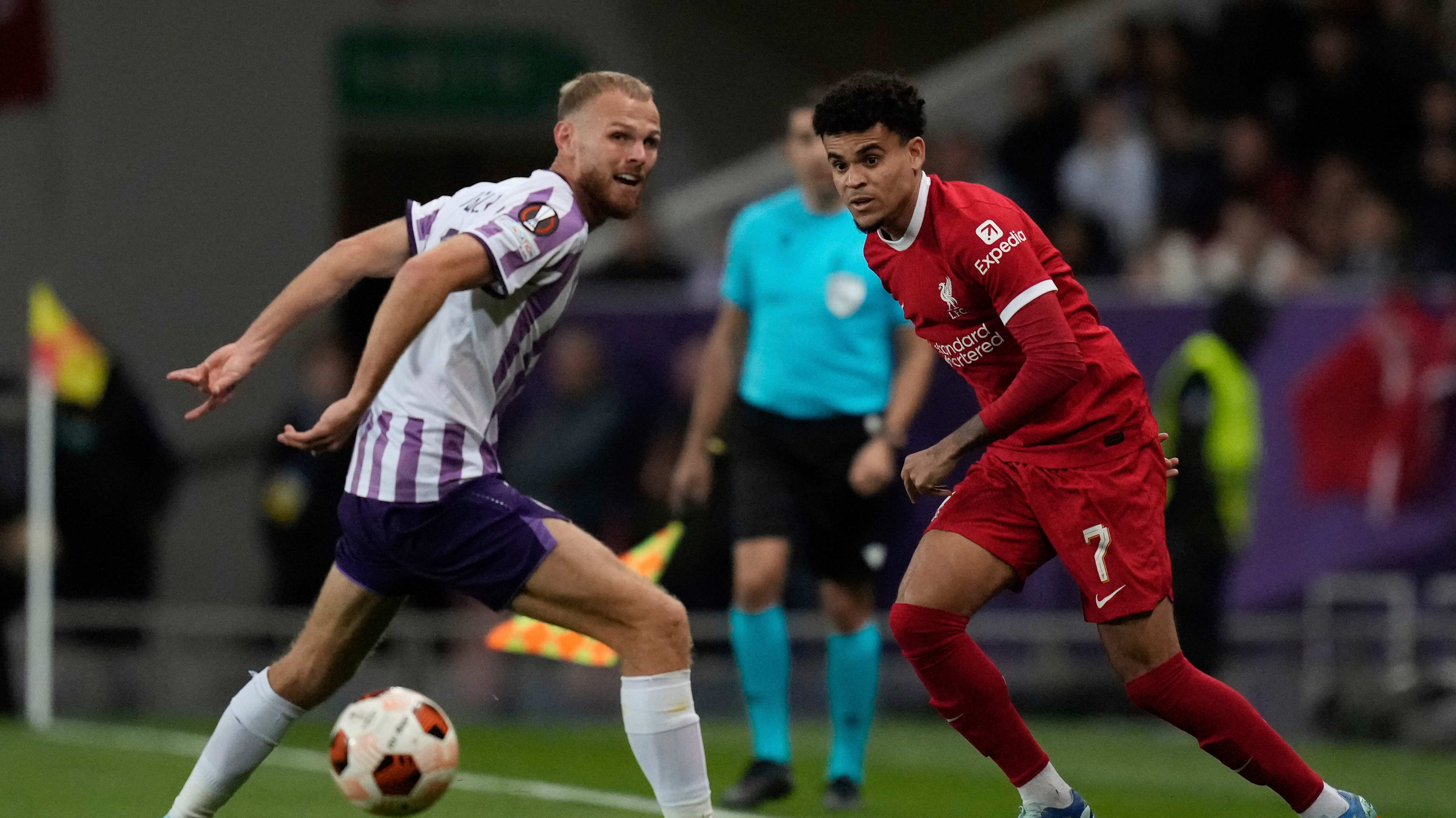 La reacción de Liverpool resultó insuficiente para evitar una derrota por 3-2 en su visita a Tolosa dentro de la Liga Europa el jueves, una jornada que sin embargo fue victoriosa para el delantero colombiano Luis Díaz.