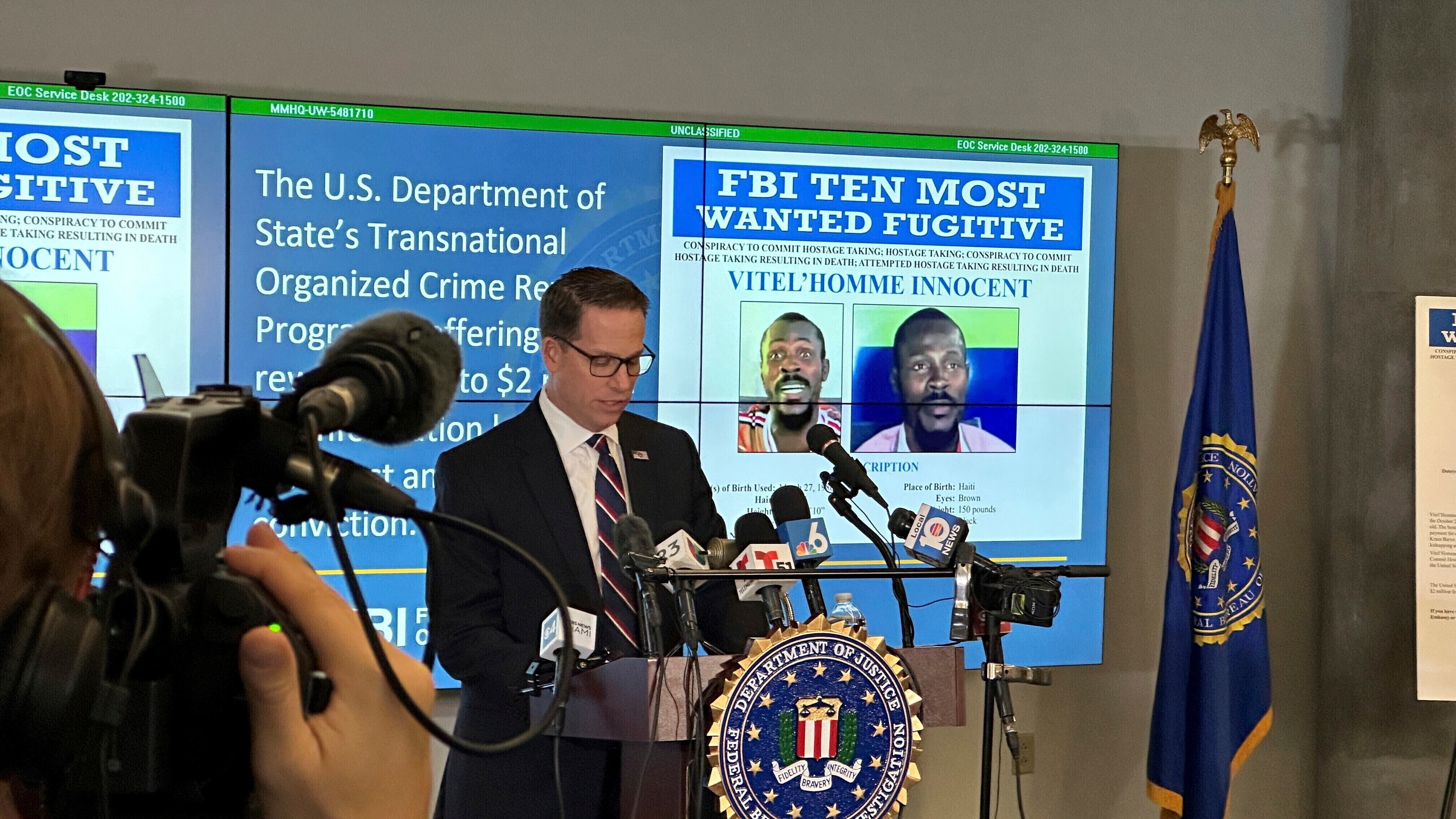 Según el FBI, Vitel’Homme encabeza a la pandilla Kraze Bayre y trabajó en conjunto con la pandilla 400 Mawozo para llevar a cabo los secuestros. La agencia cree que Vitel’Homme todavía se encuentra en Haití y que podría enfrentar pena de muerte en Estados Unidos en caso de que sea capturado y declarado culpable por el asesinato de Franklin.