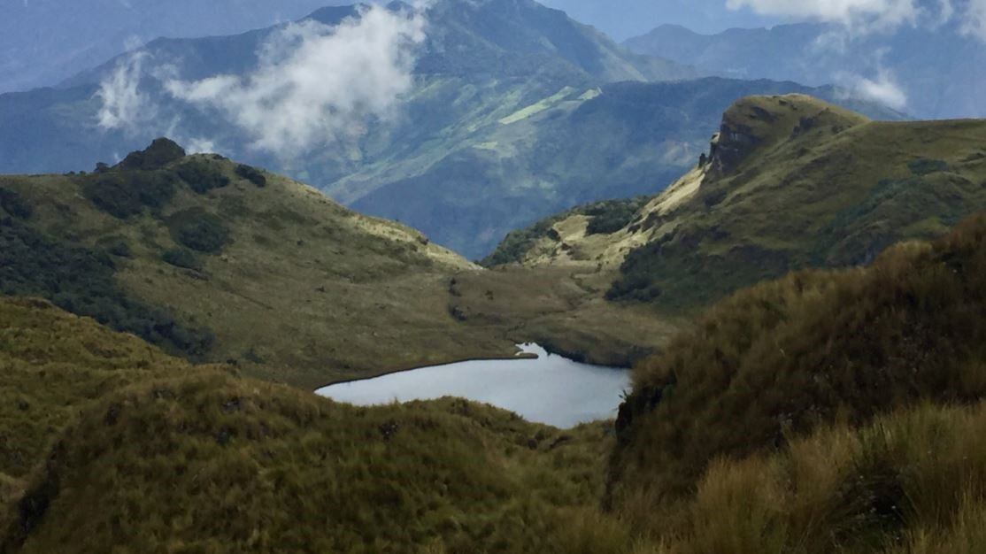 El equipo descubrió que el ecosistema actual de pastizales altoandinos, en la foto de arriba, era bastante diferente de los ecosistemas que se encuentran en otros interglaciares. En interglaciares anteriores, el lago estaba rodeado por una mezcla de pastizales y matorrales que se desarrollaron sin o con muy poco fuego.