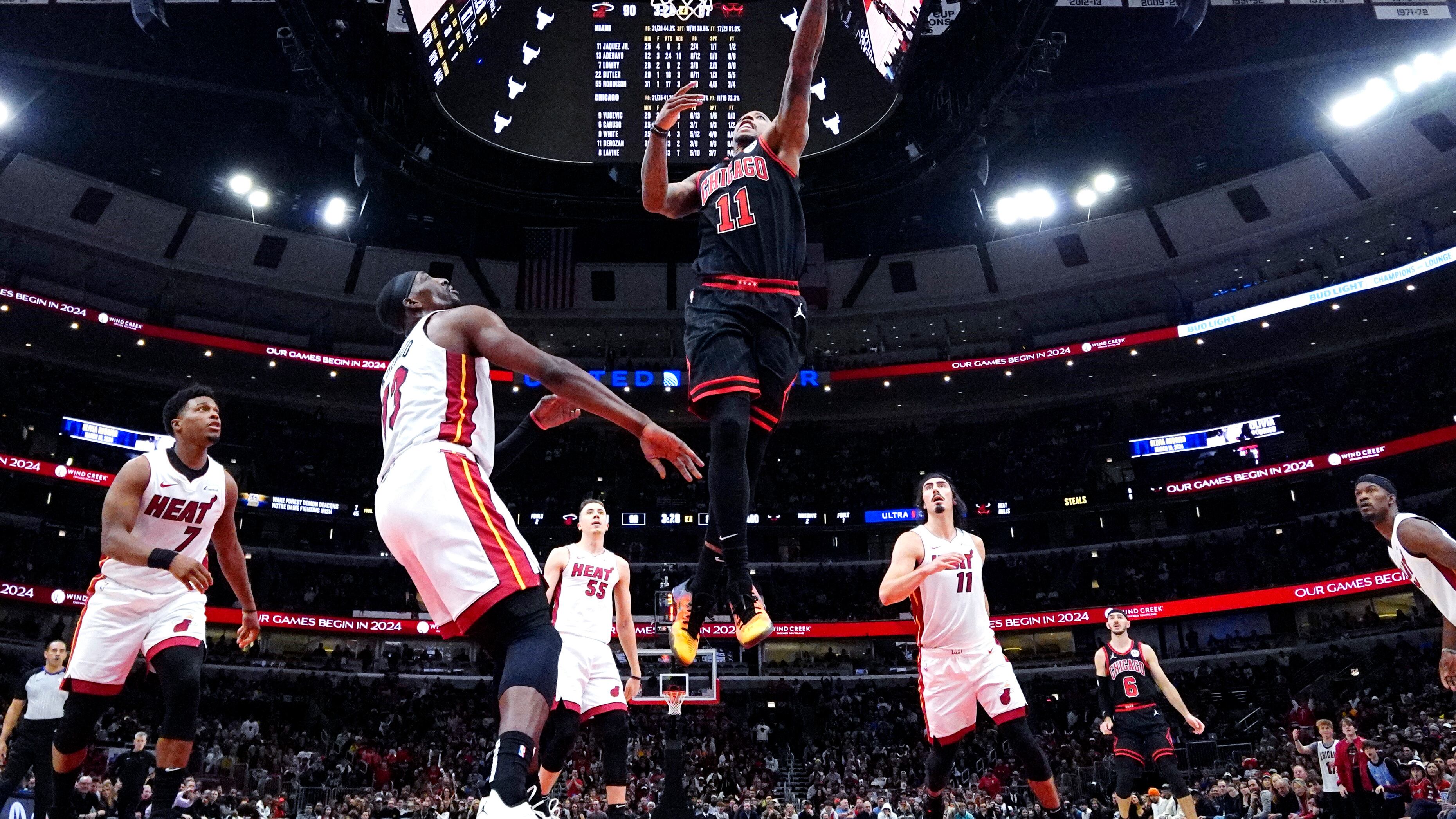 CHICAGO (AP) — DeMar DeRozan firmó 23 puntos y los Bulls de Chicago remontaron para vencer el sábado 102-97 al Heat de Miami, que vio cortada su racha de siete triunfos.
