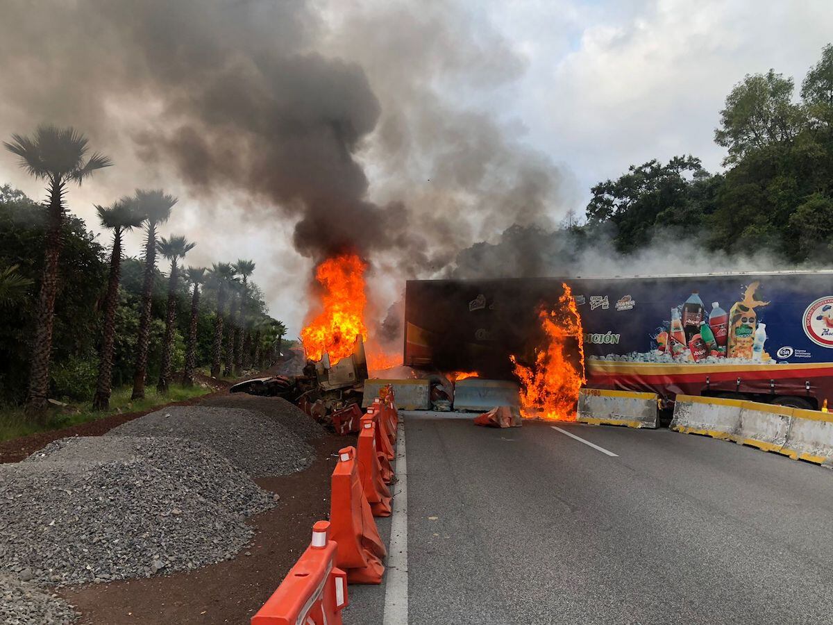 Un tráiler se incendió en el kilómetro 69 de la autopista México-Cuernavaca la mañana de este lunes 20 de noviembre, hecho que provocó el cierre de esta vía carretera.