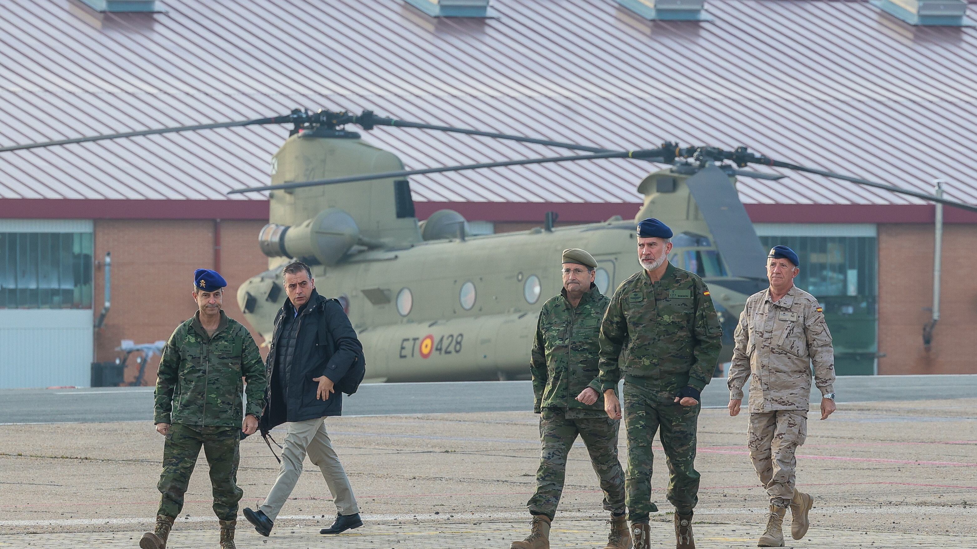 Su Majestad, que llevaba puesto el uniforme de vuelo del Ejército de Tierra, ha estado acompañado por el Jefe del Estado Mayor del Ejército de Tierra (JEME), el general Amador Enseñat y Berea.