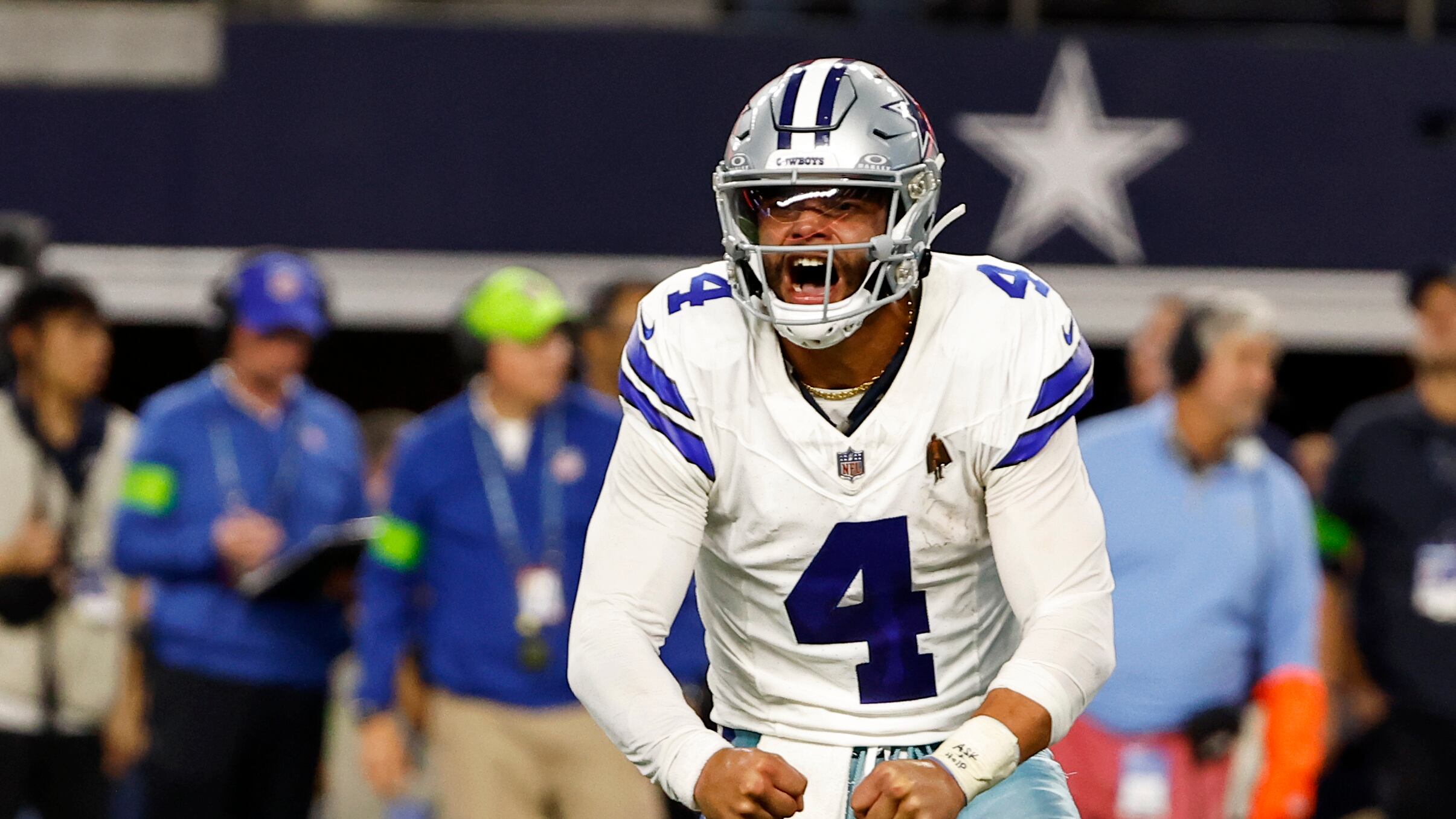 Los Cowboys estaban abajo 35-30 cuando detuvieron a Zach Charbonnet en cuarta y primera en la yarda 46 de Dallas. Siete jugadas después Ferguson anotó y Prescott le lanzó el balón a Brandin Cooks para la conversión de dos puntos. Cooks tuvo otra atrapada para touchdown en el segundo periodo.