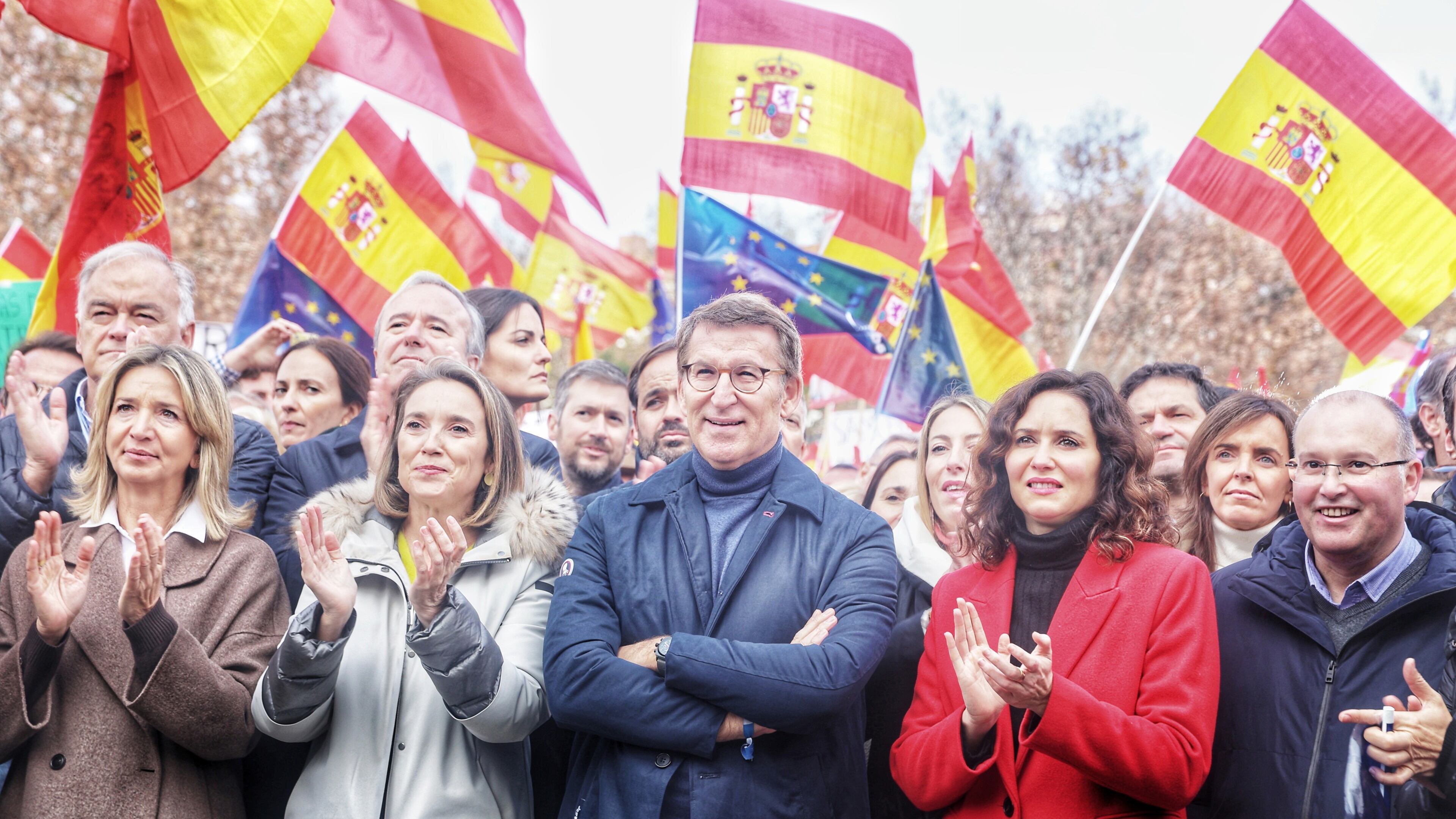 Feijóo ha señalado que habrá más protestas como esta en la calle, si bien fuentes del PP las sitúan ya el próximo año, coincidiendo con la tramitación parlamentaria de la Ley de Amnistía en el Congreso. "Si no les gustan estas movilizaciones, que se preparen. Habrá muchas más mientras no restablezcamos el Estado de derecho en nuestro país", ha advertido.