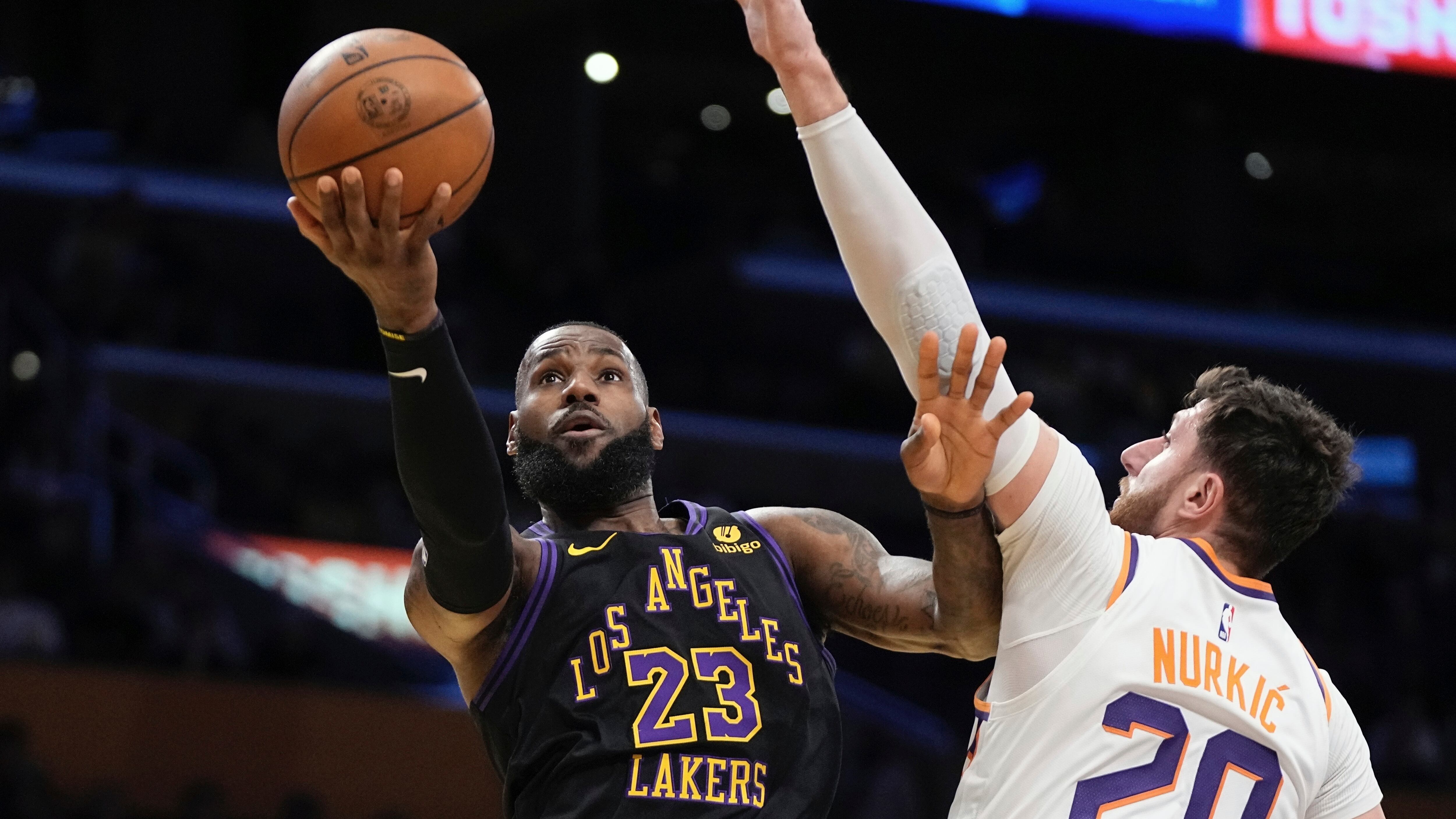 LOS ÁNGELES (AP) — LeBron James anotó 15 de sus 31 puntos en el cuarto periodo y los Lakers de Los Ángeles confirmaron su lugar en las semifinales de la primera Copa de la NBA al vencer el martes 106-103 a los Suns de Phoenix.
