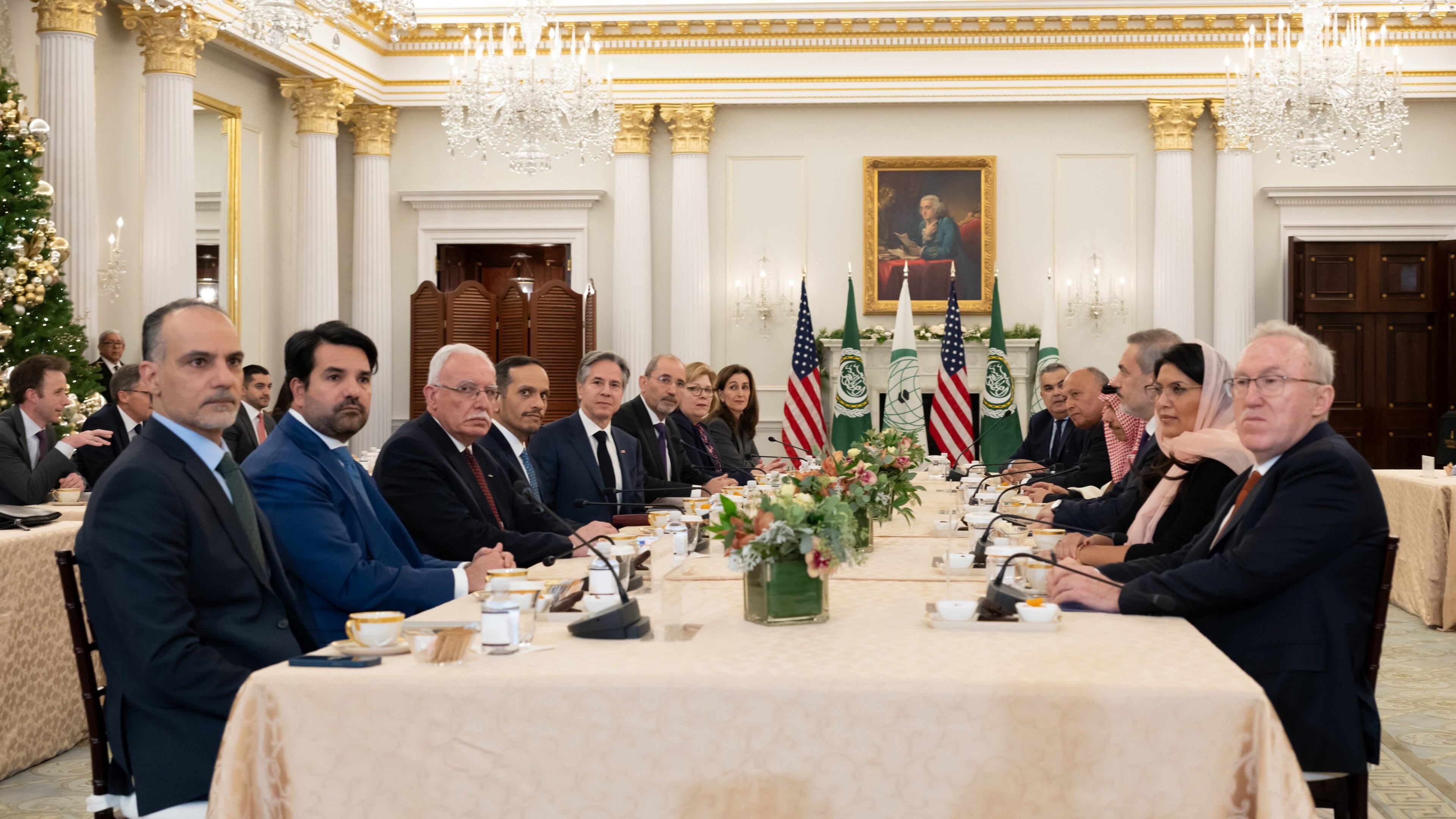 Los asistentes, excepto Blinken, "expresaron también su decepción por el fracaso del Consejo de Seguridad de la ONU, por segunda vez, a la hora de votar una resolución para un alto el fuego inmediato en la Franja de Gaza por razones humanitarias, después de que Estados Unidos utilizara su poder de veto".