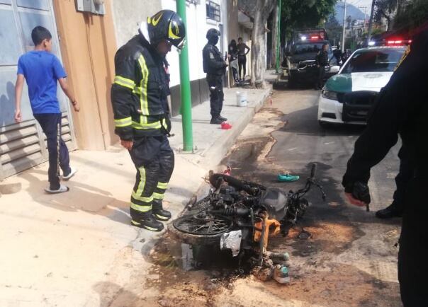 Al llegar al lugar, los elementos de seguridad se percataron de que una persona se encontraba sobre el pavimento con visibles manchas de sangre en el rostro, justo al lado de una motocicleta en llamas. Asimismo, una cuadra adelante hallaron a otro hombre con manchas de sangre en el rostro y quemaduras en la piel, por lo que los policías solicitaron los servicios de emergencia.