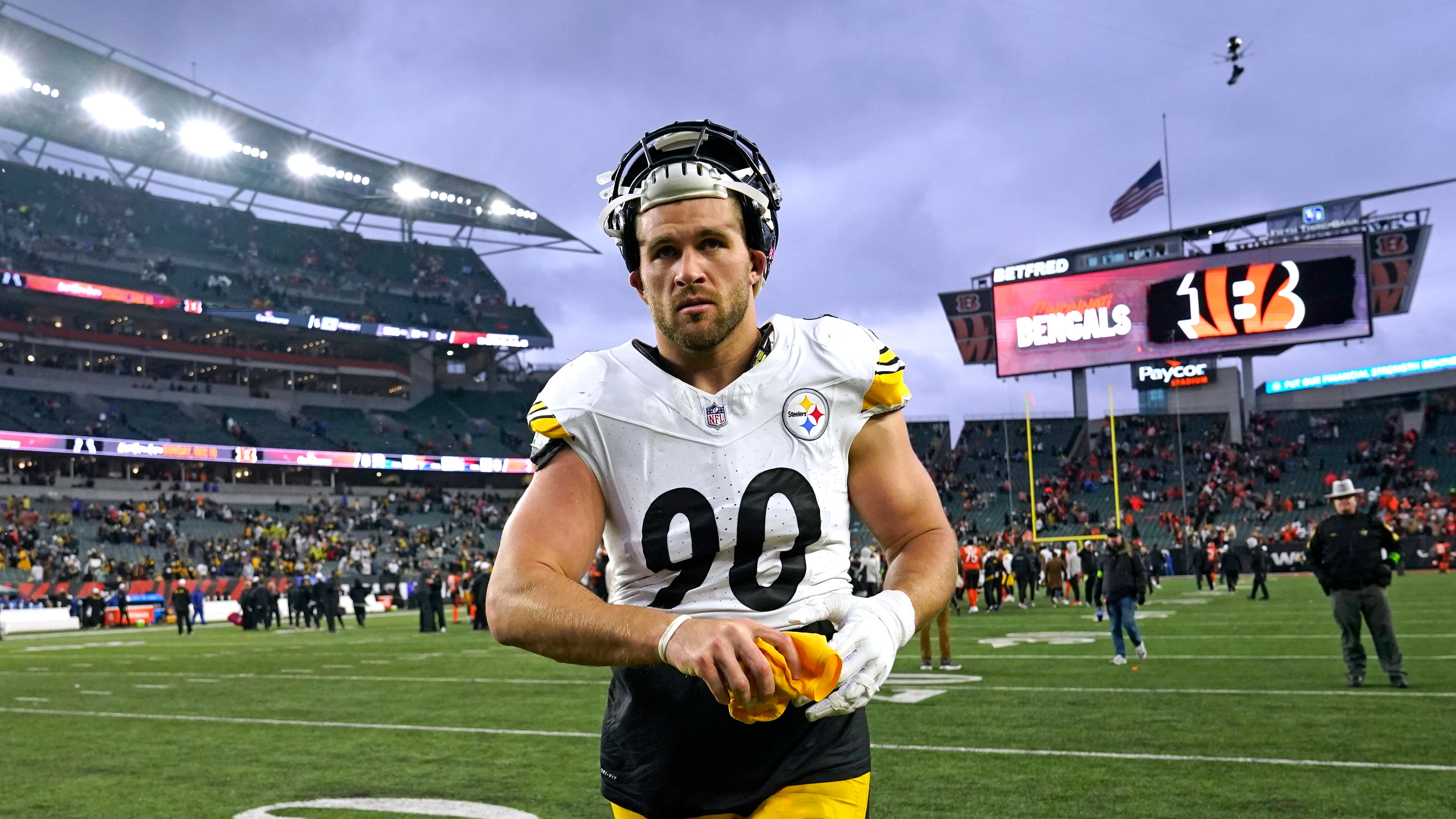 El linebacker T.J. Watt de lo Steelers de Pittsburgh al final del partido contra los Bengals de Cincinnati, el domingo 26 de noviembre de 2023, en Cincinnati. (AP Foto/Carolyn Kaster) AP (Carolyn Kaster/AP)