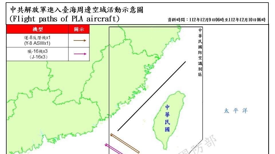 El Ministerio de Defensa taiwanés ha indicado que a las 6.00 horas (hora local) se ha registrado la presencia de 12 aviones alrededor de Taiwán, de los cuales cuatro han cruzado la línea media del estrecho de Taiwán y han entrado en la zona de identificación de defensa aérea de la isla.
