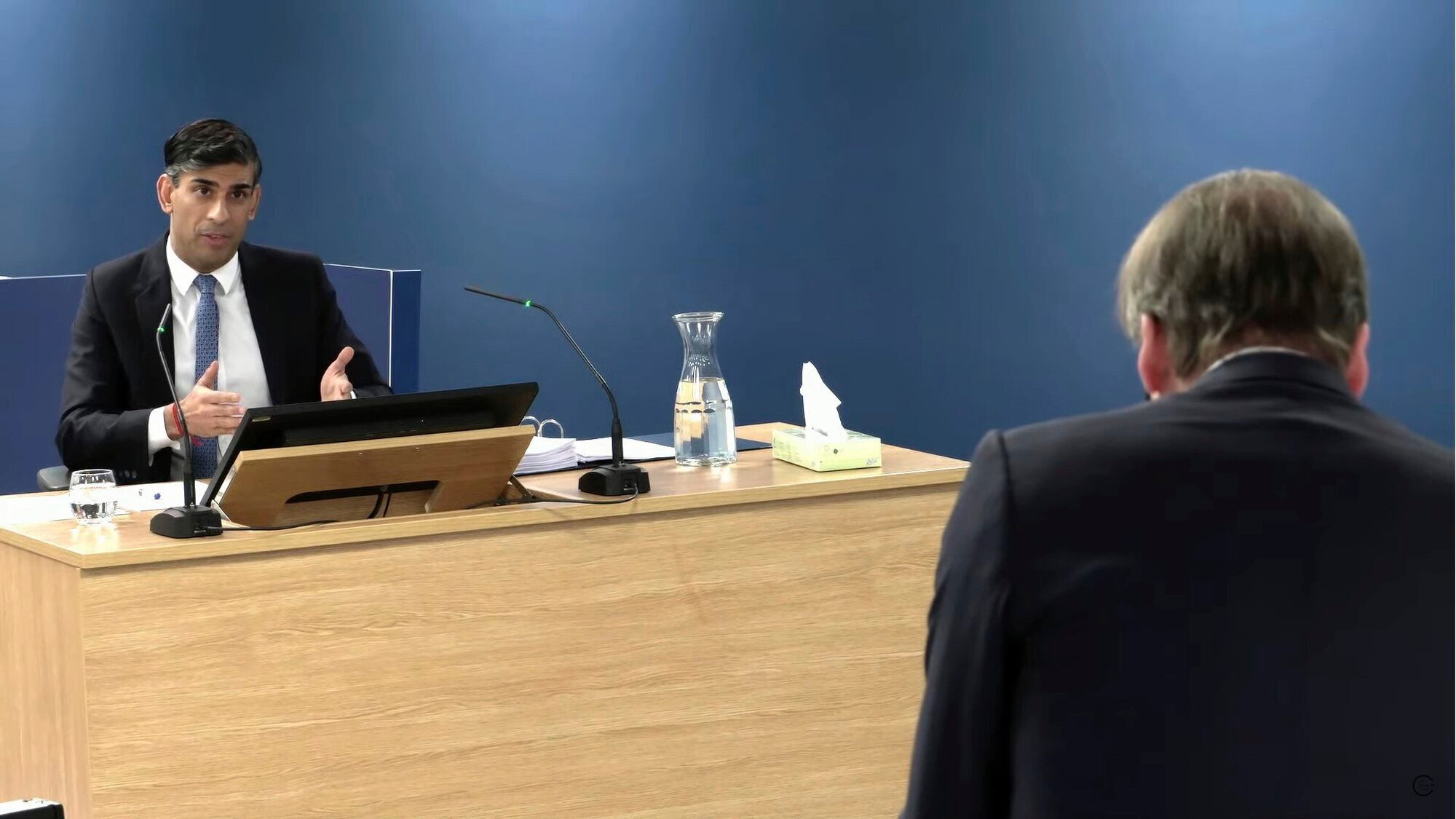 El primer ministro británico Rishi Sunak siendo entrevistado para la investigación sobre las políticas durante la pandemia, en Dorland House, Londres, el 11 de diciembre de 2023. Foto tomada de video. (UK COVID-19 Inquiry/PA via AP) AP (UK COVID-19 Inquiry/AP)