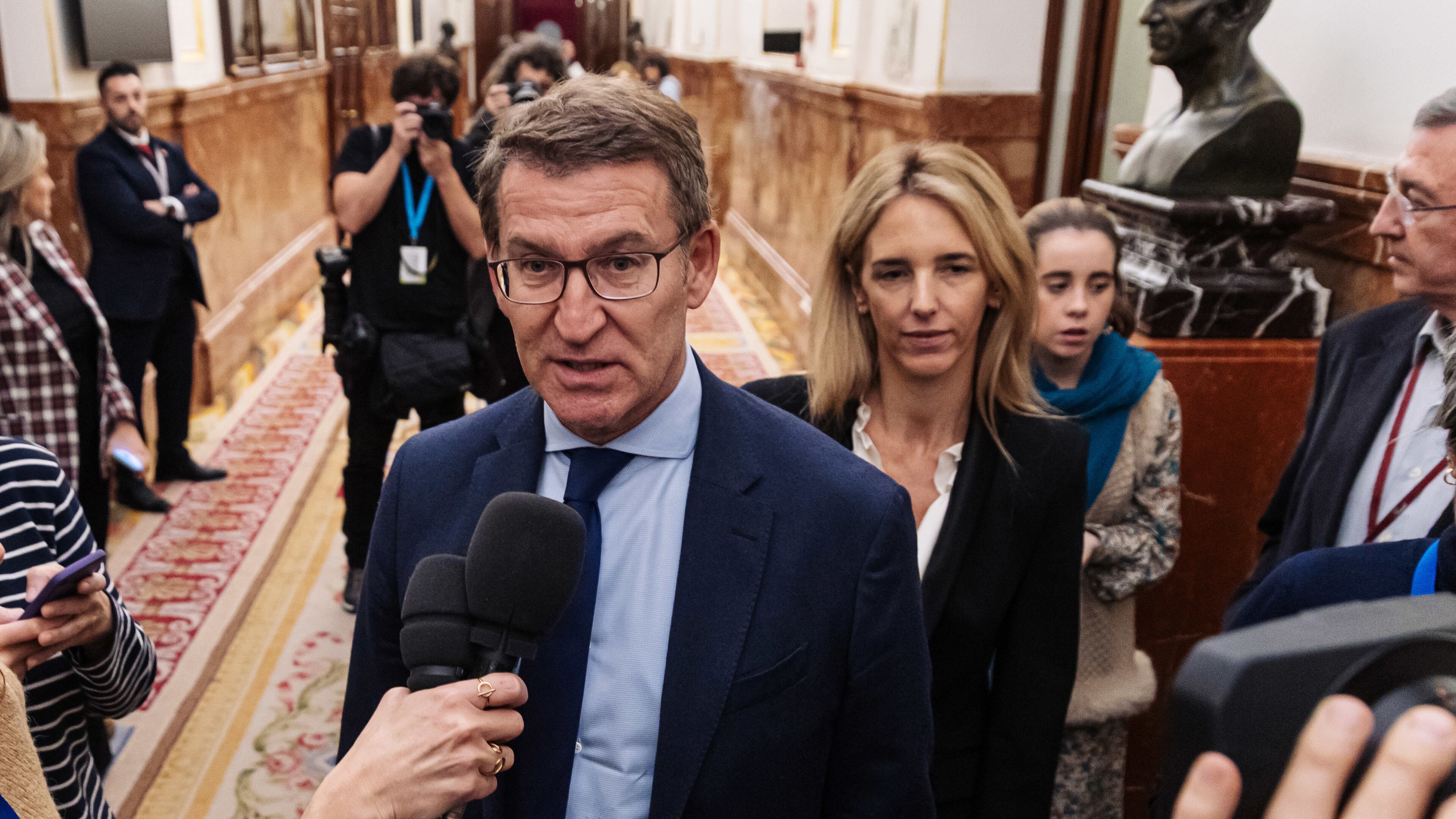 En declaraciones a los periodistas en los pasillos del Congreso, Feijóo ha indicado que van conociendo "el contenido del pacto encapuchado entre el partido de Sánchez y Bildu", que demuestra que "han vuelto a mentir a los ciudadanos de Pamplona, de Navarra y del conjunto e España".