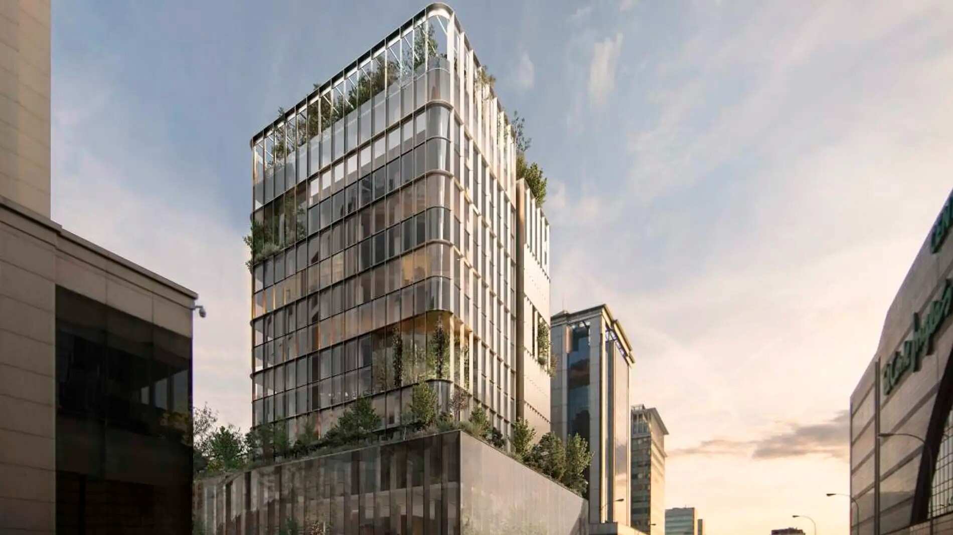 La imagen del edificio se reconocerá por el uso de costillas metálicas que formarán parte del nuevo muro cortina de la fachada y el empleo de vidrios curvos en las esquinas "para un diálogo más amable con las otras torres del ámbito". Con el fin de reforzar la sobriedad del edificio y de mantener el equilibrio cromático, el estudio ha decidido mezclar el metal, el vidrio y la madera en la elaboración de su propuesta.