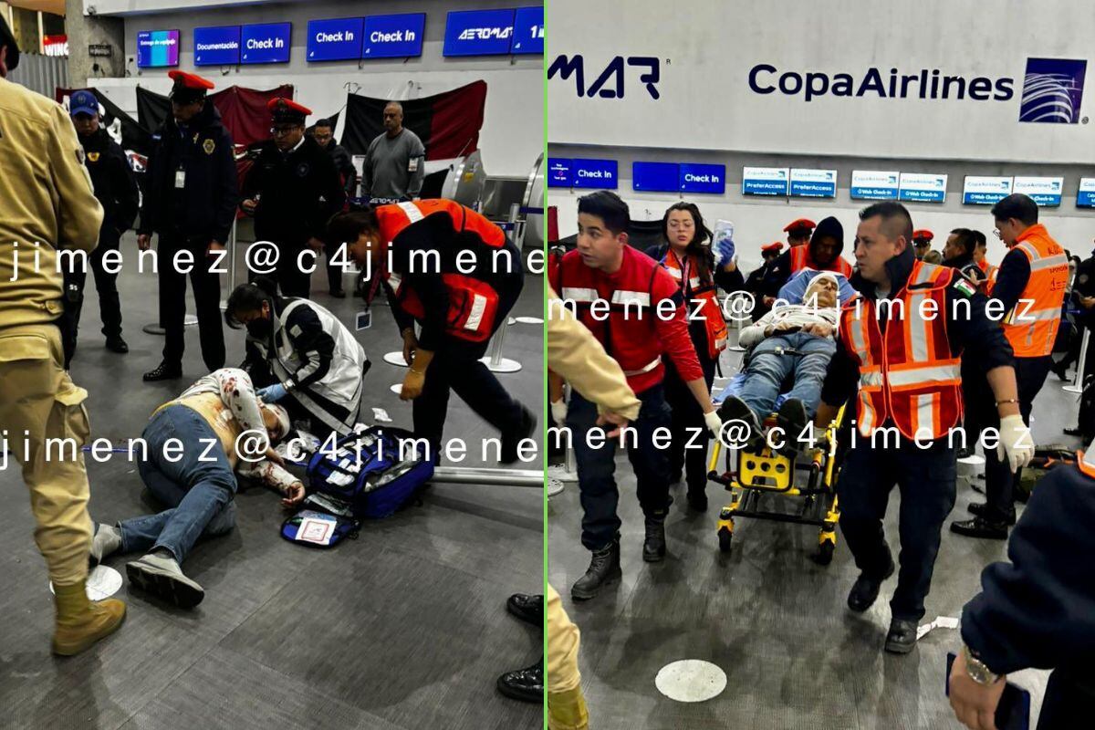 Uno de los pasajeros, de nacionalidad mexicana, agredió con una navaja al otro hombre de nacionalidad venezolana; el periodista Carlos Jiménez (C4) compartió en redes sociales las imágenes del hombre apuñalado tras ser apuñalado por una persona al interior del AICM mientras estaba acompañado de su esposa.
