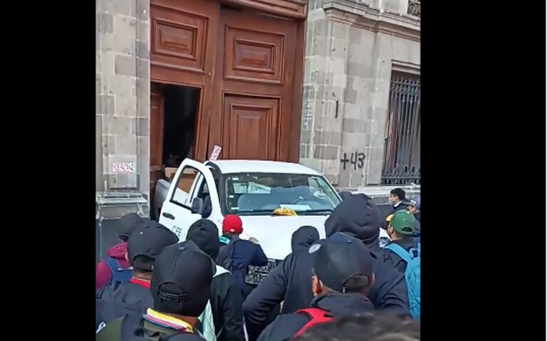 Los normalistas utilizaron una camioneta de la Comisión Federal de Electricidad (CFE) para derribar la puerta Mariana 2 de Palacio Nacional, pero fueron repelidos por elementos de la Policía Militar usando gases lacrimógenos.