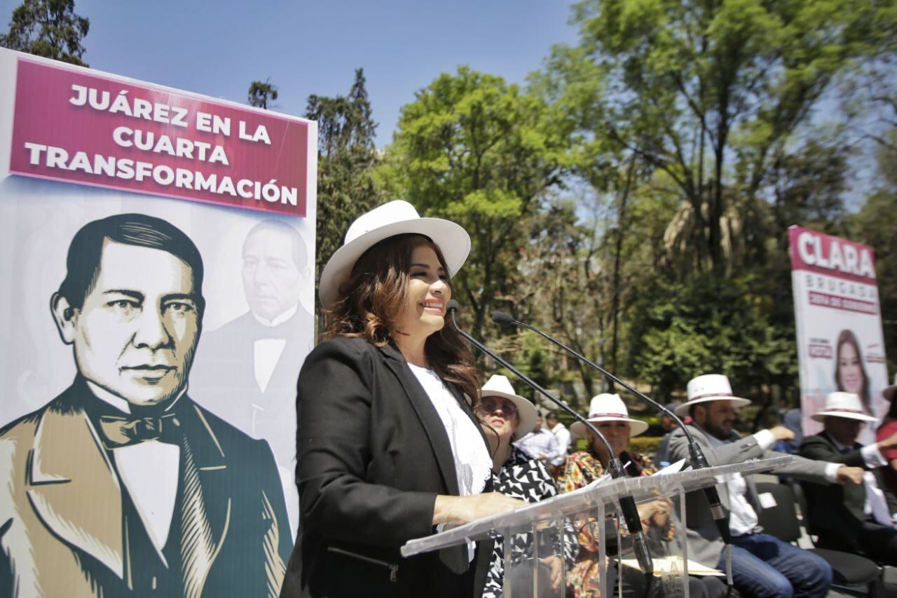 La abanderada de Morena, PT y PVEM, afirmó que la Cuarta Transformación es juarista, la Cuarta Transformación es liberal, porque coincide plenamente con el pensamiento de Benito Juárez, quien rechazaba los privilegios y creía en la educación como un instrumento transformador, en la democracia como único destino de los pueblos y en la voluntad popular como única fuente de legitimidad de los gobiernos.