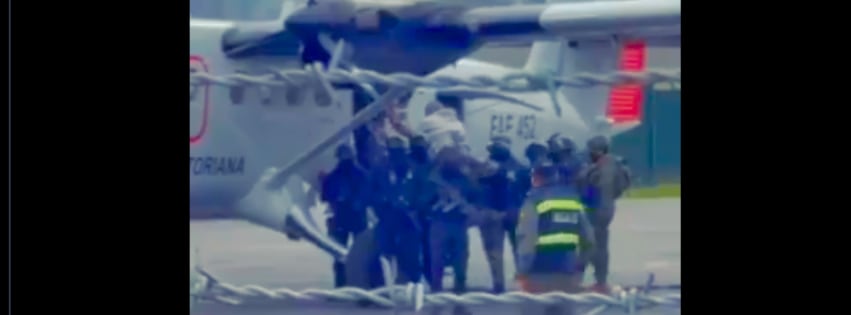 Se han difundido imágenes del momento en que suben al exvicepresidente a un avión con fuerte resguardo militar. En las imágenes se lo ve vestido con un calentador gris y con dificultad para caminar.