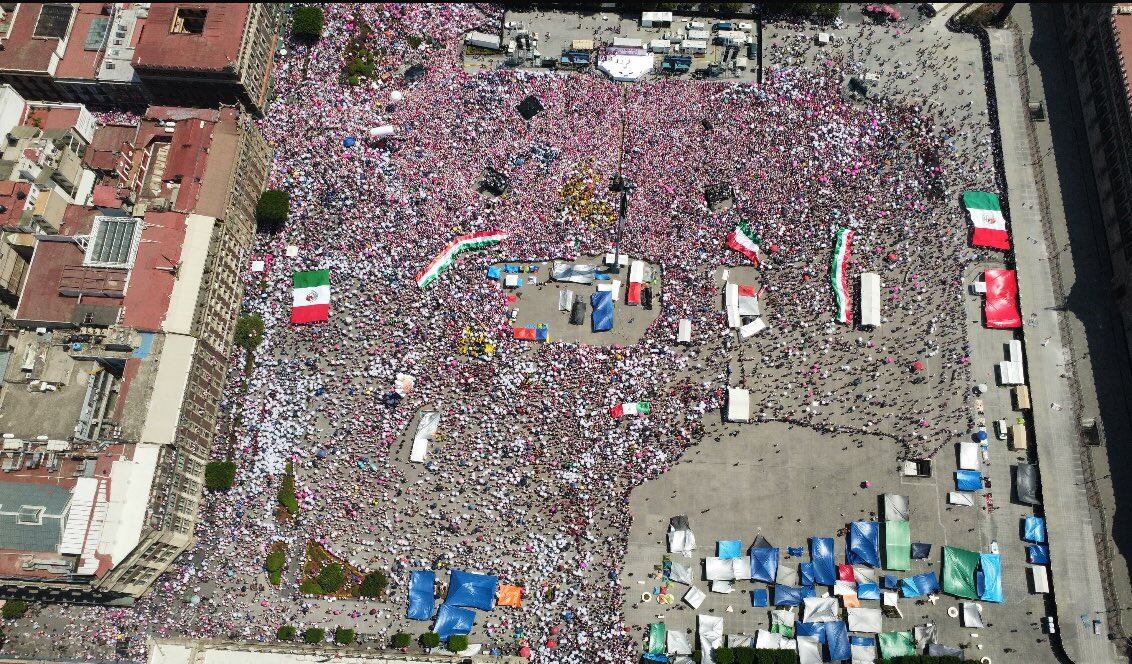 La Secretaría de Seguridad Ciudadana (SSC) de la Ciudad de México dio a conocer que la movilización que se llevó a cabo este domingo 19 de mayo en el Zócalo capitalino, organizada por la Marea Rosa, tuvo un aforo de 95 mil personas y hubo saldo blanco.
