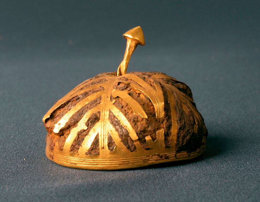 Nuestra investigación se ha centrado en los dos objetos de hierro, una semiesfera hueca recubierta con una fina lámina calada de oro, cuya función quizás fue la de un remate de empuñadura o cetro, y una pulsera abierta. El objetivo era determinar si es hierro producido a partir de minerales ferruginosos extraídos del manto del planeta Tierra o, por el contrario, se trata de hierro extraterrestre procedente de un meteorito llegado desde el espacio exterior.