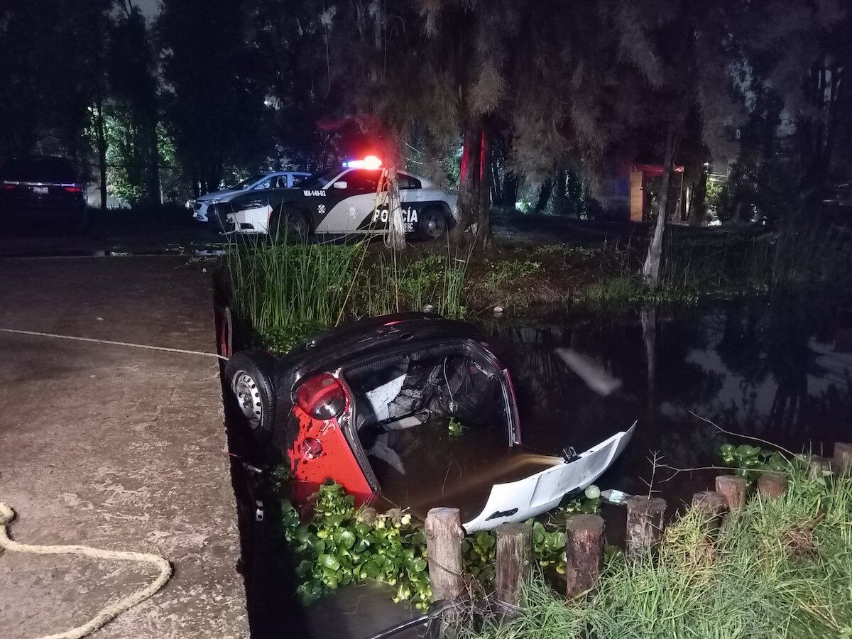 La noche del sábado se registró un fuerte accidente automovilístico, en el que estuvo involucrado un automóvil tipo Chevy que volcó y cayó a uno de los canales de Xochimilco.