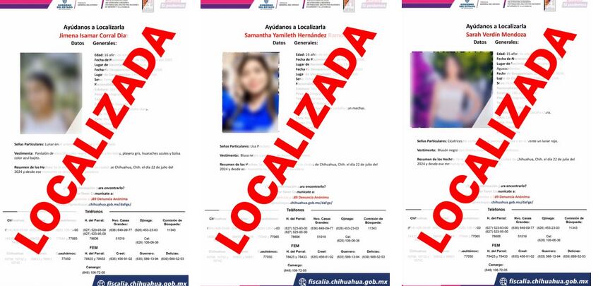 El último mensaje de una de ellas fue enviado en la noche, alrededor de las 21:27 horas. Sus fotos y la información de las adolescentes se difundió por redes sociales. Asimismo, la Fiscalía General del Estado de Chihuahua emitió las fichas de búsqueda con sus datos personales.