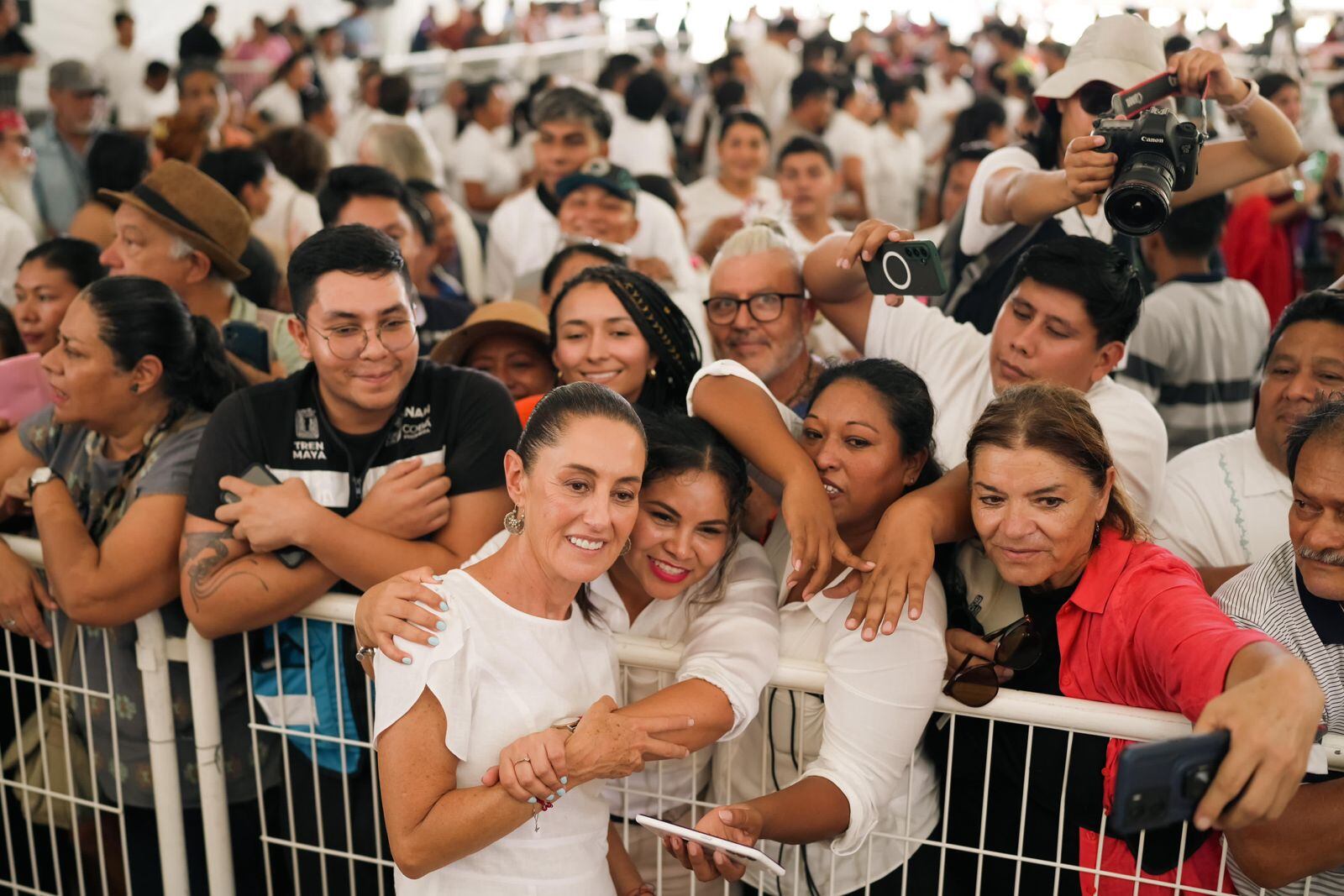 ‘’Va a continuar la construcción del Tren Maya, porque ahora el Presidente, pues ya va a dejar todos los kilómetros que dan la vuelta a la península, pero la idea que deja el Presidente es que no solo sea para pasajeros, sino que también sea un transporte de carga que también potencie el desarrollo de la región y ese nos va a tocar a nosotros desarrollarlo. El Interoceánico y ahora nos vamos a llevar los trenes al norte de la República, así que se va a poder ir en tren desde aquí hasta el norte’', puntualizó.
