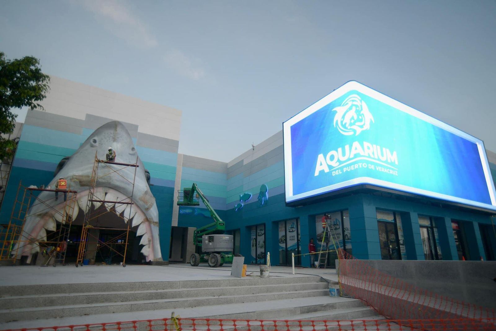 La colocación de esta gigantesca pantalla forma parte del proyecto de modernización y ampliación del Aquarium del Puerto de Veracruz que incluye la renovación de la fachada de la plaza, la cual será inaugurada el próximo 16 de noviembre en el marco de la celebración del 32 aniversario del recinto turístico.