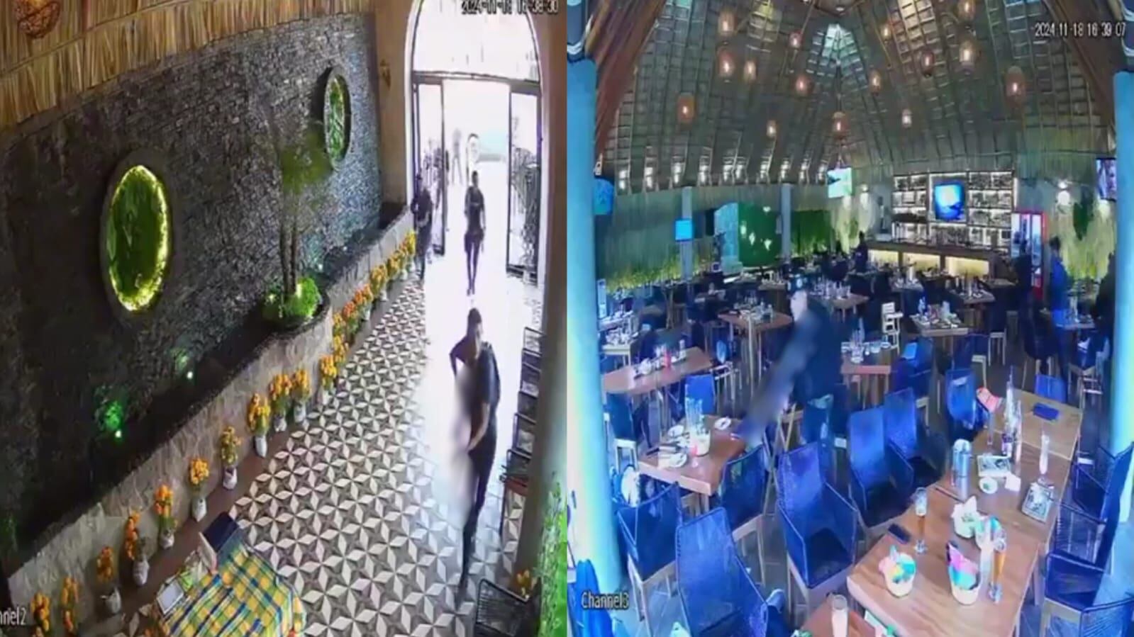 En los otros dos videos, generados por dos cámaras en diferentes ángulos en la zona de las mesas principales del restaurante, se evidencia la entrada gradual de los criminales. Mientras ingresaron al lugar, con disparos y apuntando con las armas, los comensales se resguardaron debajo de sus mesas.