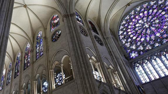Cualquiera que recuerde el Notre Dame anterior a la época del incendio se sorprenderá. Las paredes se han limpiado de la suciedad y el hollín acumulados durante siglos. Las ventanas limpias dejan entrar más luz que antes, permitiendo que brillen los colores y el pan de oro de los murales. También se han limpiado las 2.300 estatuas y los 8.000 tubos de órgano. Hace poco, fueron instaladas 1.500 sillas nuevas, no sin antes bendecirlas. Hubo que montar 2.000 toneladas de andamios y volver a desmontarlos. Casi 250 empresas y estudios han participado en la restauración.