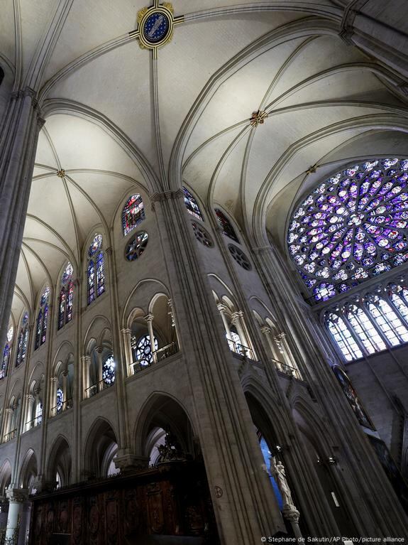 Cualquiera que recuerde el Notre Dame anterior a la época del incendio se sorprenderá. Las paredes se han limpiado de la suciedad y el hollín acumulados durante siglos. Las ventanas limpias dejan entrar más luz que antes, permitiendo que brillen los colores y el pan de oro de los murales. También se han limpiado las 2.300 estatuas y los 8.000 tubos de órgano. Hace poco, fueron instaladas 1.500 sillas nuevas, no sin antes bendecirlas. Hubo que montar 2.000 toneladas de andamios y volver a desmontarlos. Casi 250 empresas y estudios han participado en la restauración.