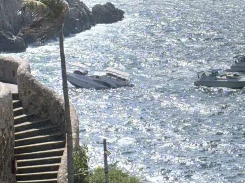 En Acapulco, Guerrero, una embarcación choco contra una roca en la zona de La Quebrada, por lo que sufrió daños y comenzó a hundirse, el yate de lujo es rentada para paseos en las playas de ese destino turístico.