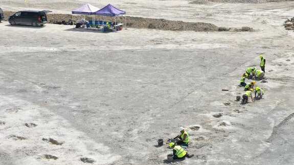 En días posteriores, unas 100 personas participaron en las excavaciones, supervisadas por las universidades de Oxford y Birmingham, en un lugar que era una antigua laguna poco profunda de aguas cálidas.