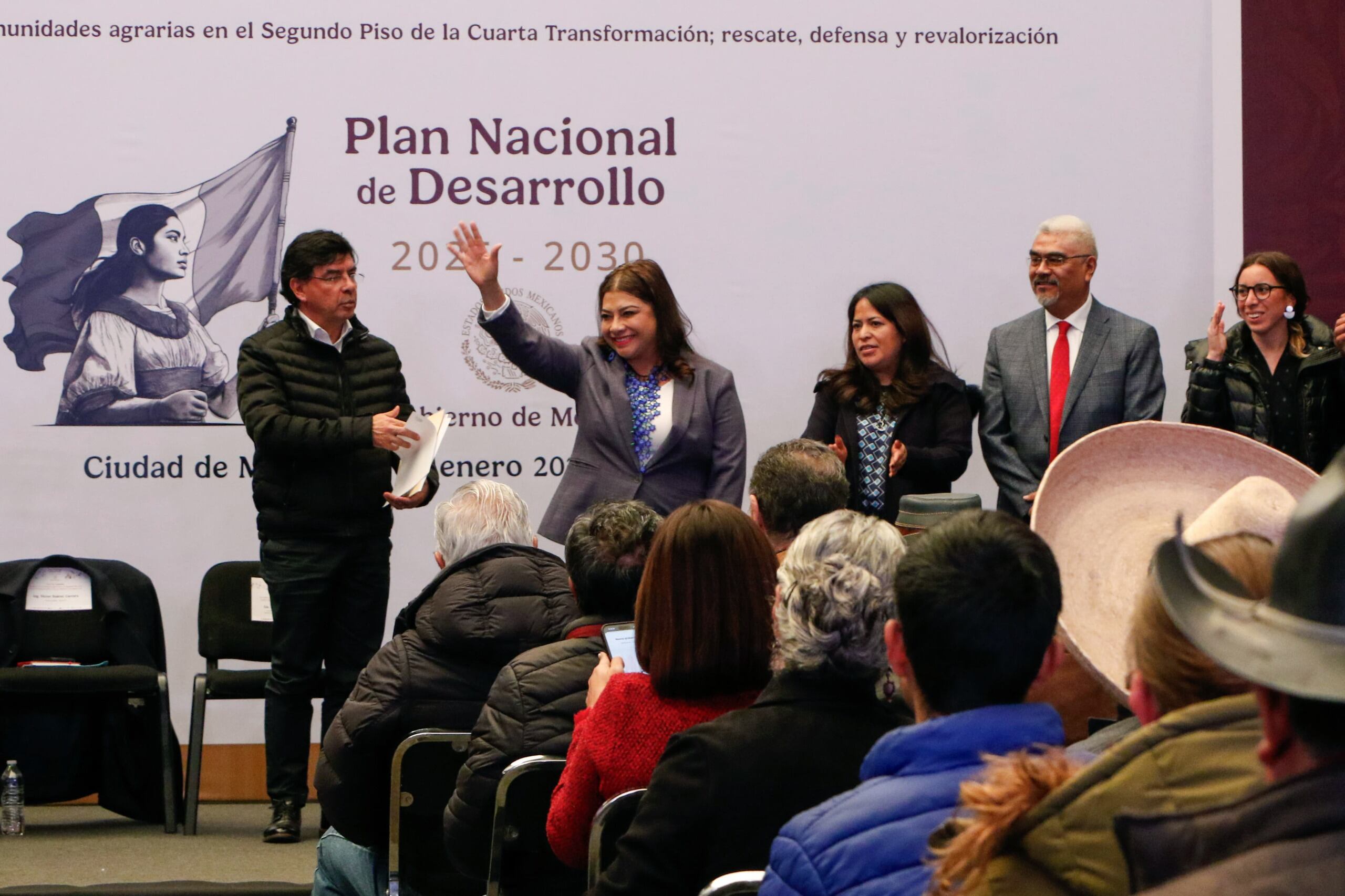 El procurador agrario Víctor Suárez Carrera aseguró que con la realización de este foro se establece un cambio histórico, pues por primera vez los ejidos y comunidades agrarias participan en la construcción del Plan Nacional de Desarrollo 2025-2030.