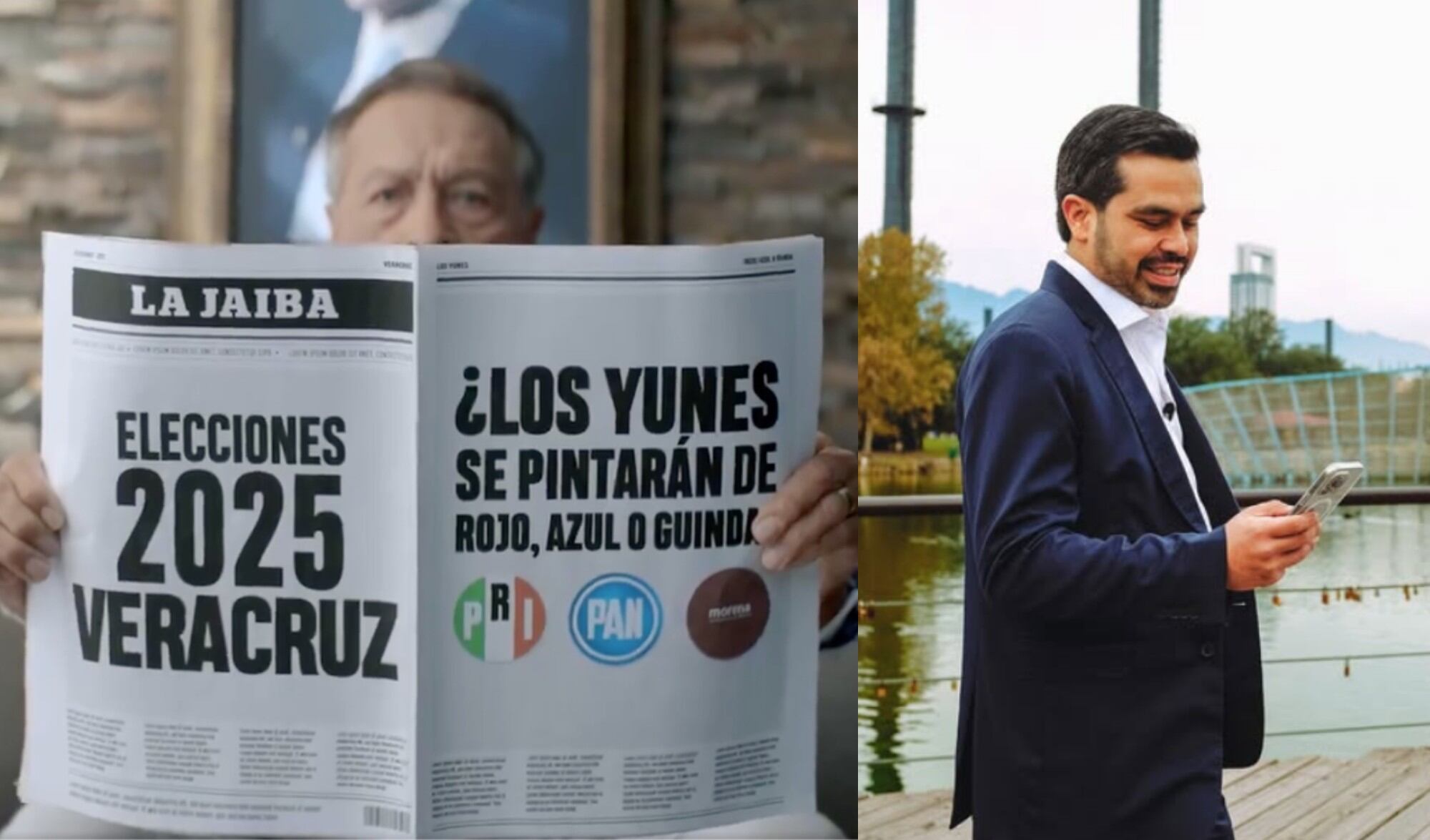 En dicho spot de 37 segundos, un hombre aparece leyendo un periódico que tiene como primera plana la pregunta “¿Los Yunes se pintarán de rojo, azul o guinda?”, ante las elecciones del 2025 en Veracruz.