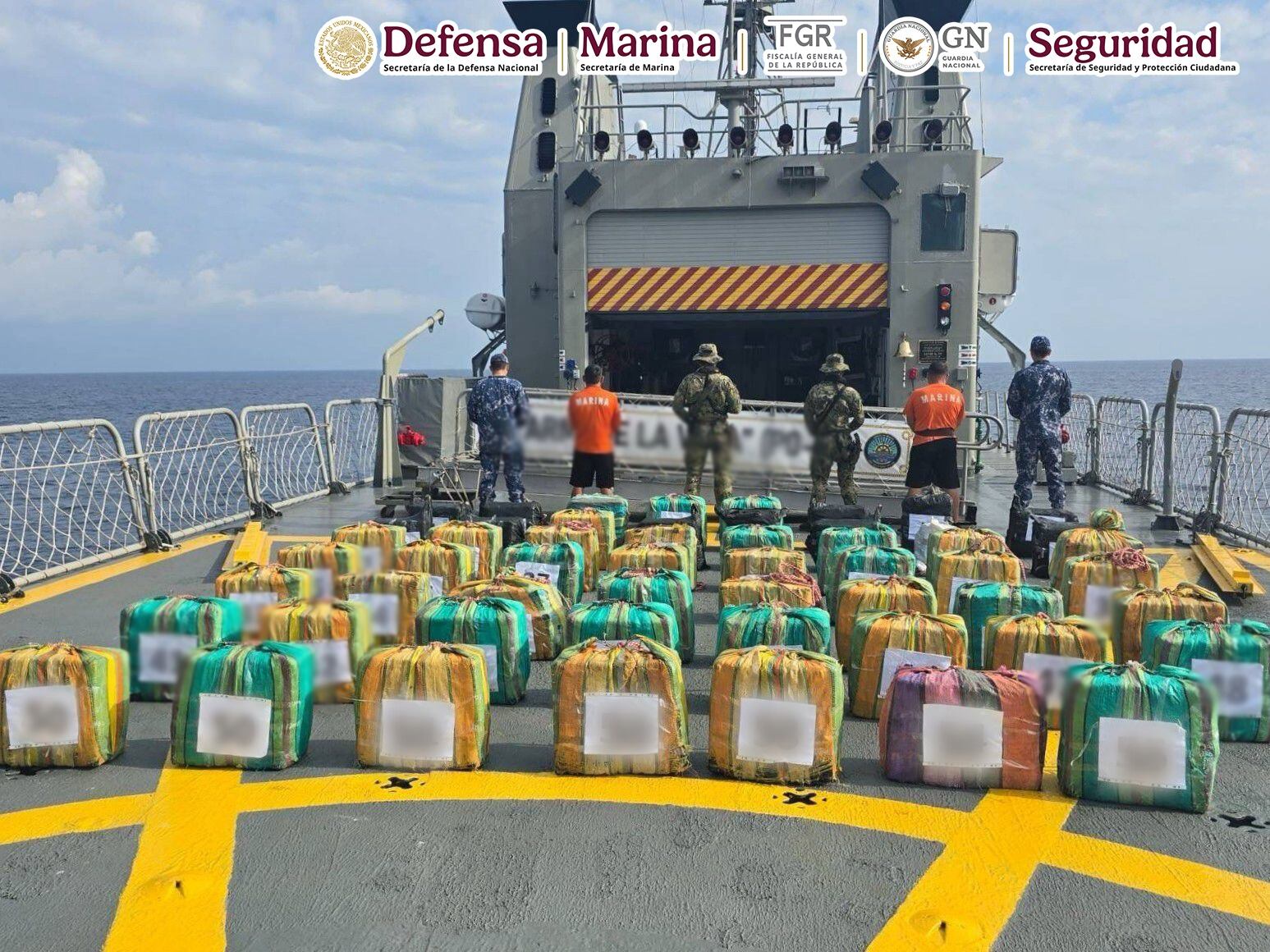 “La Secretaría de Marina detuvo a 3 personas extranjeras quienes se encontraban a bordo de 2 embarcaciones; se aseguraron más de 1,900 kg de cocaína. La Secretaría de Marina del 1 de octubre de 2024 a la fecha ha asegurado 26 mil 508 kilogramos de cocaína en alta mar”, informó el secretario de Seguridad y Protección Ciudadana (SSPC), Omar García Harfuch.
