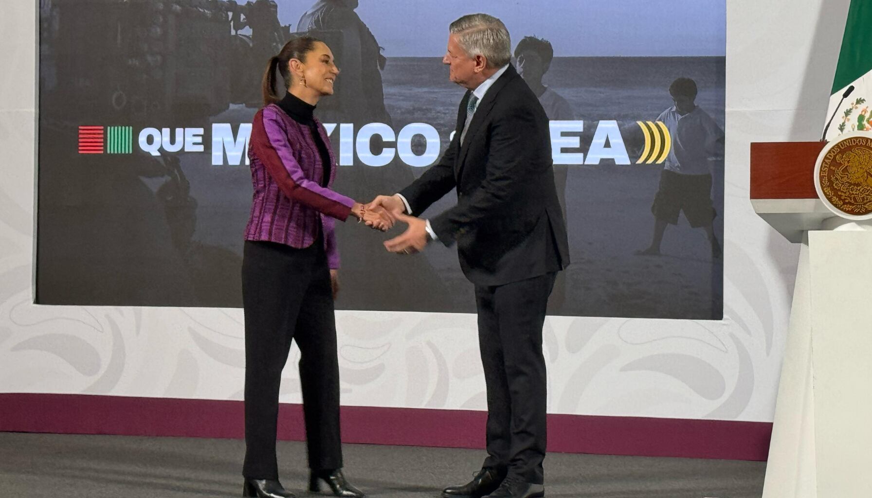 Antes de retirarse, Sarandos entregó a la mandataria un rebozo artesanal hecho a mano en Tenancingo, Estado de México, que formó parte del vestuario de Pedro Páramo.