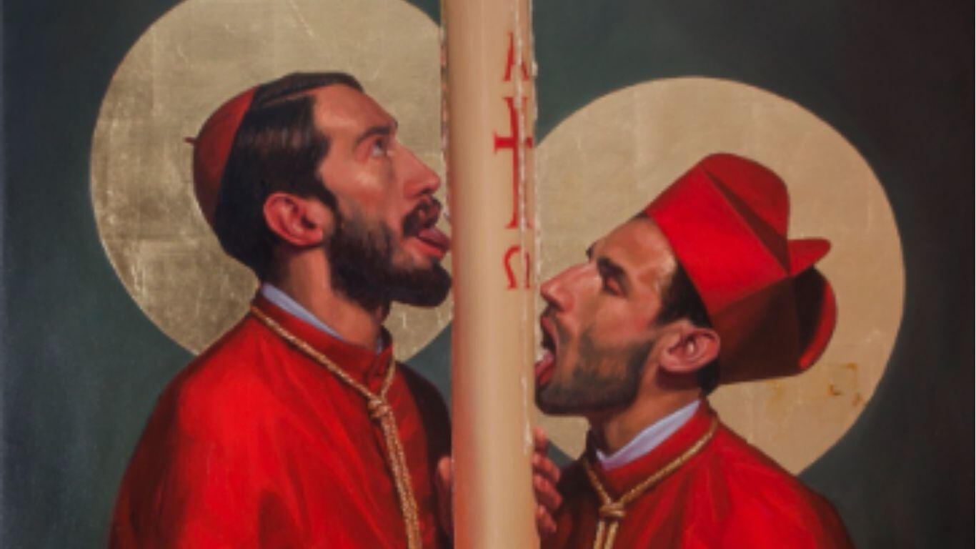 La exposición, que tuvo lugar en el Antiguo Colegio de San Carlos, estuvo compuesta por nueve obras, en las cuales se representaba a sacerdotes lamiendo varios sirios, haciendo alusión al miembro masculino, entre otras personalidades de la iglesia.