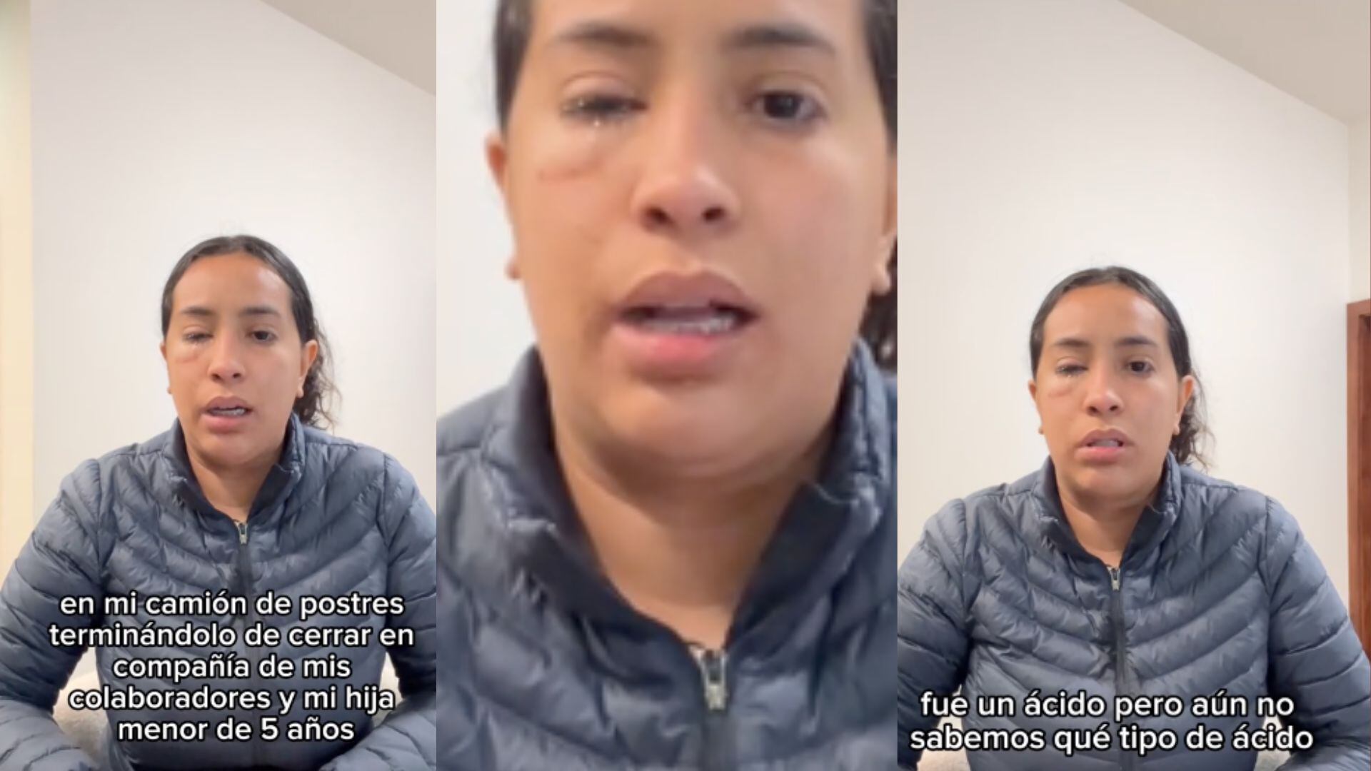 “En enero recibí agresión física de una persona, tampoco salí a tocar el tema aquí en redes por no generar morbo, hice todo legal, pero este lunes una persona desconocida para mi atentó contra mi vida vaciándome ácido, quemando mi ojo, mi boca, nariz y oido por dentro, pido ser escucha. No soy una delincuente, no soy un asesina, soy una mujer que trabaja día con día para darle lo mejor a mi hija, a mi familia y mi trabajo habla por sí solo, temo por mi familia, y que estas personas intenten hacer algo más, basta de tanta violencia”, expresó Sánchez.