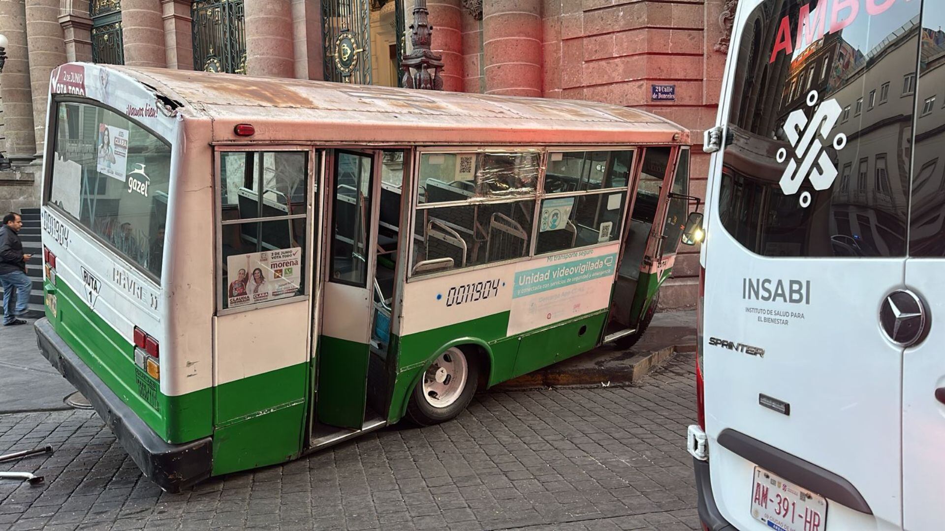La unidad de transporte público, perteneciente a la Ruta 1, terminó sobre las escaleras del acceso principal al Congreso, quedando muy cerca de la entrada del edificio en la calle Donceles. Por otro lado, la camioneta particular involucrada colisionó contra un poste en la calle Allende, justo en la intersección con Donceles.