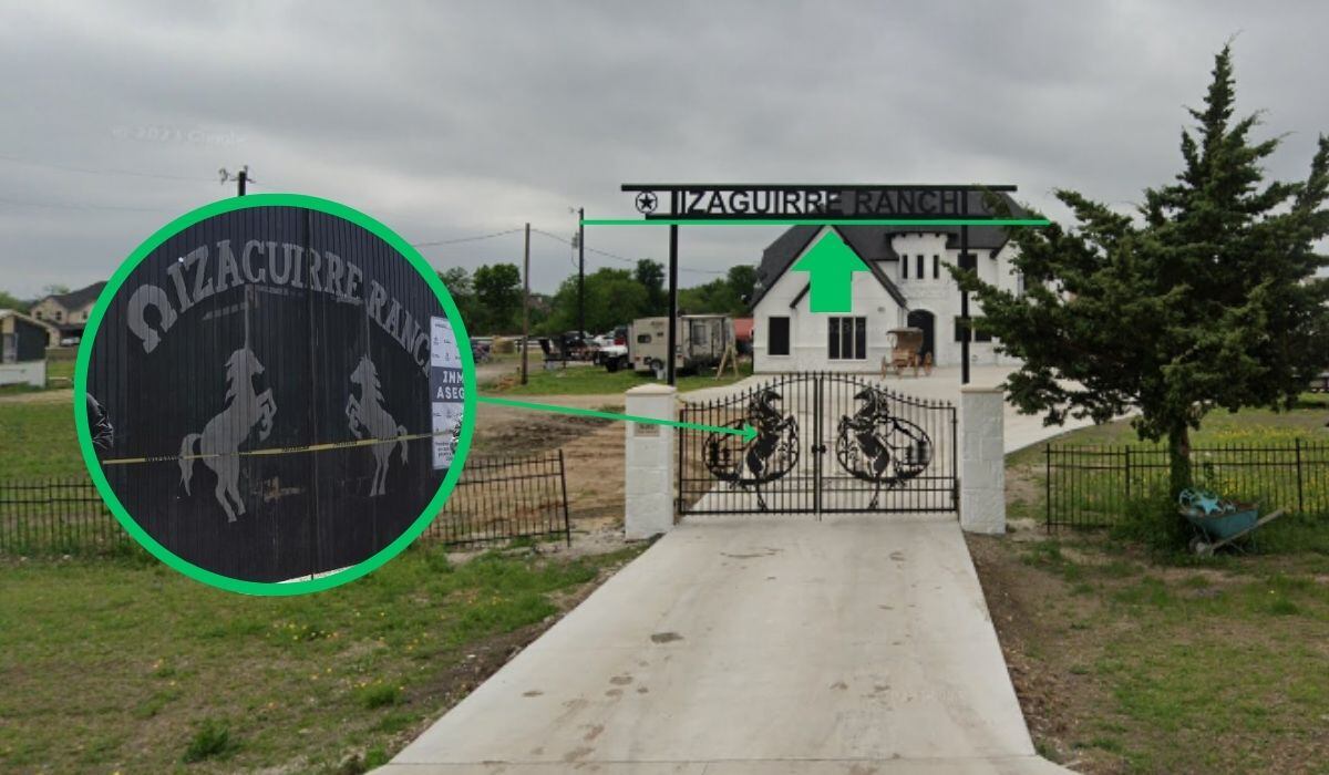 En la imagen satelital, se puede ver el lugar, cuya entrada tiene herrajes con el nombre “Izaguirre Ranch” y logotipos con figuras de caballos, muy similares a los que se encuentran en el Rancho Izaguirre de Teuchitlán, Jalisco.