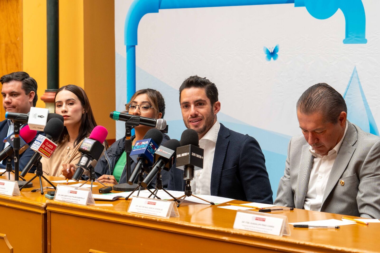 En conferencia de prensa, el diputado local del PVEM José Alberto Couttolenc Buentello detalló que la iniciativa contempla, además, un programa de distribución gratuita de pipas de agua potable tanto en escuelas como en comunidades con mayor escasez. En una primera fase, más de mil 100 planteles educativos serán beneficiados, priorizando aquellos que enfrentan una mayor falta de suministro, con pipas de hasta 10 mil litros.